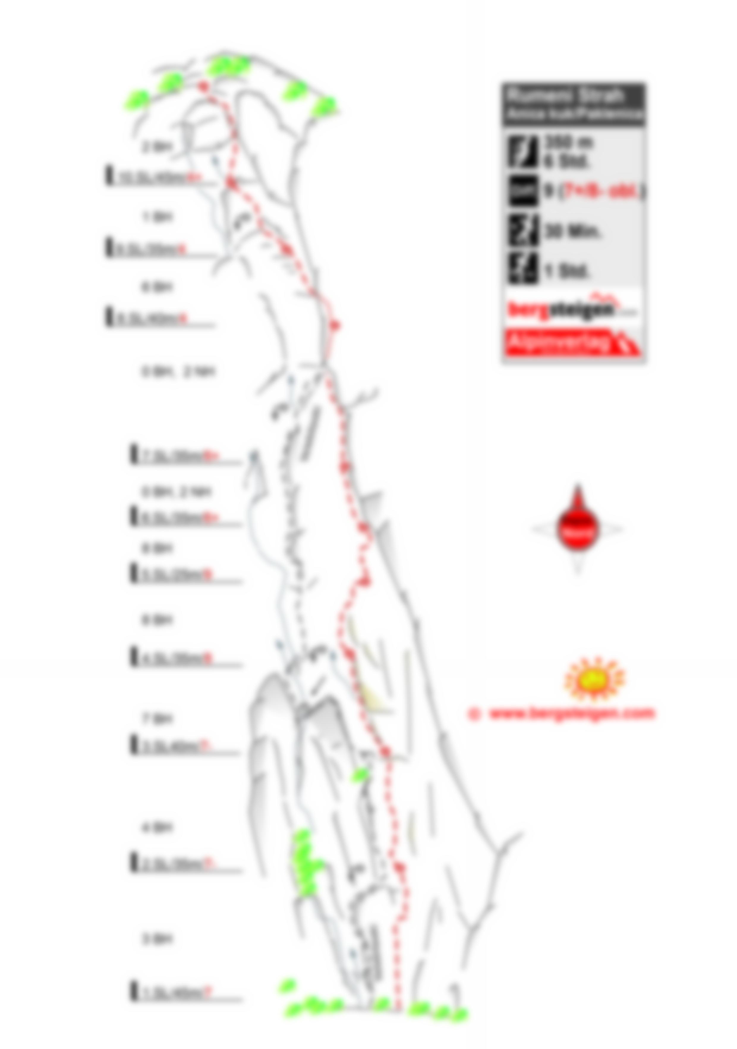 Ansonsten sind die Seillängen wie folgt aufgeteilt: 6b; 6a+; 6a+; 7a; 7c; 6a; 6a; 4b; 4b, 5b