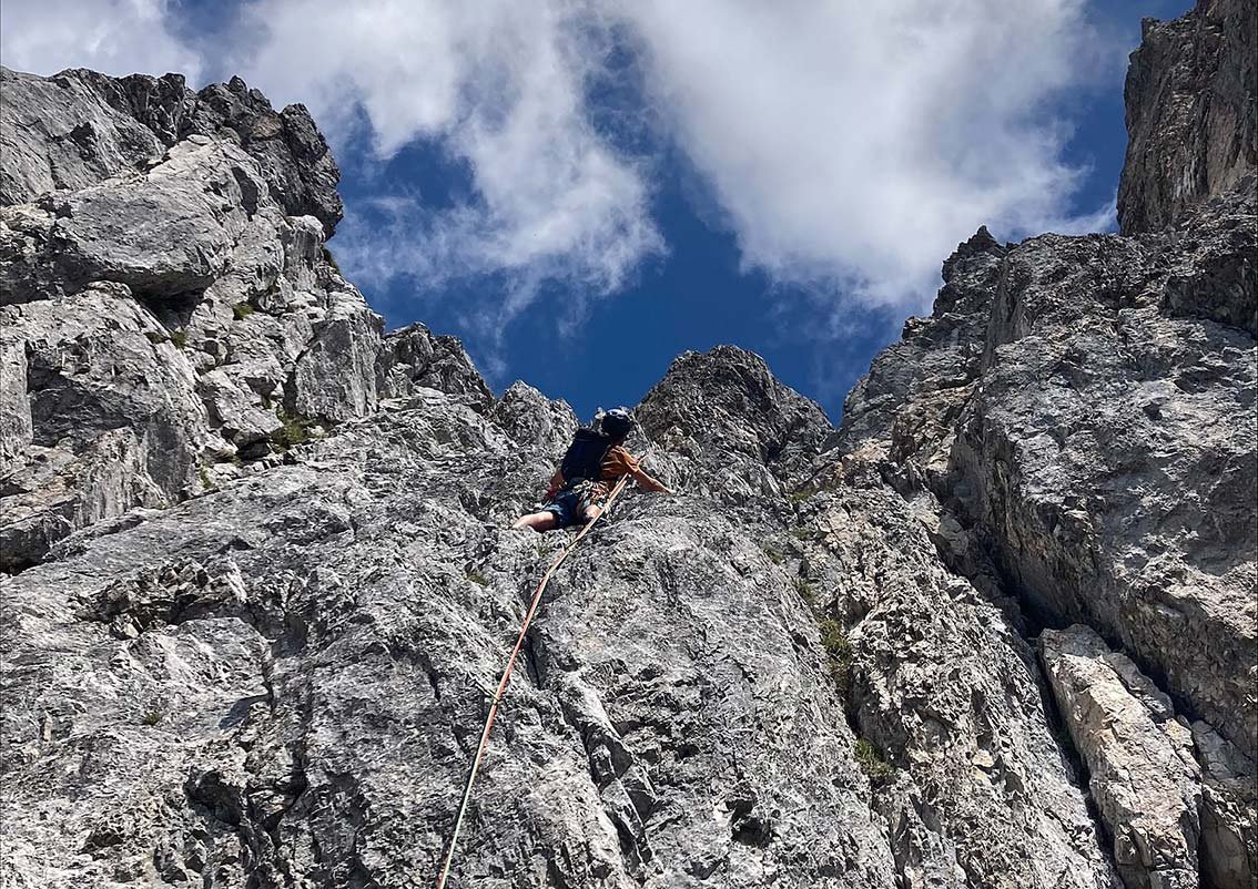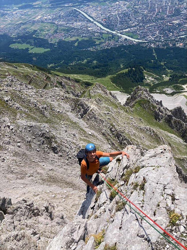 Die Rustikalo ist wie der Name schon sagt eine rustikale, kurze Mehrseillängenroute an den Südabbrüchen der Seegrubenspitze. Die Route wurde mit Bohrhaken abgesichert. Die ein oder andere brüchige Stelle gilt es aber zu beachten - nur so kann man am Ende den unbeschwerten Blick auf Innsbruck genießen.