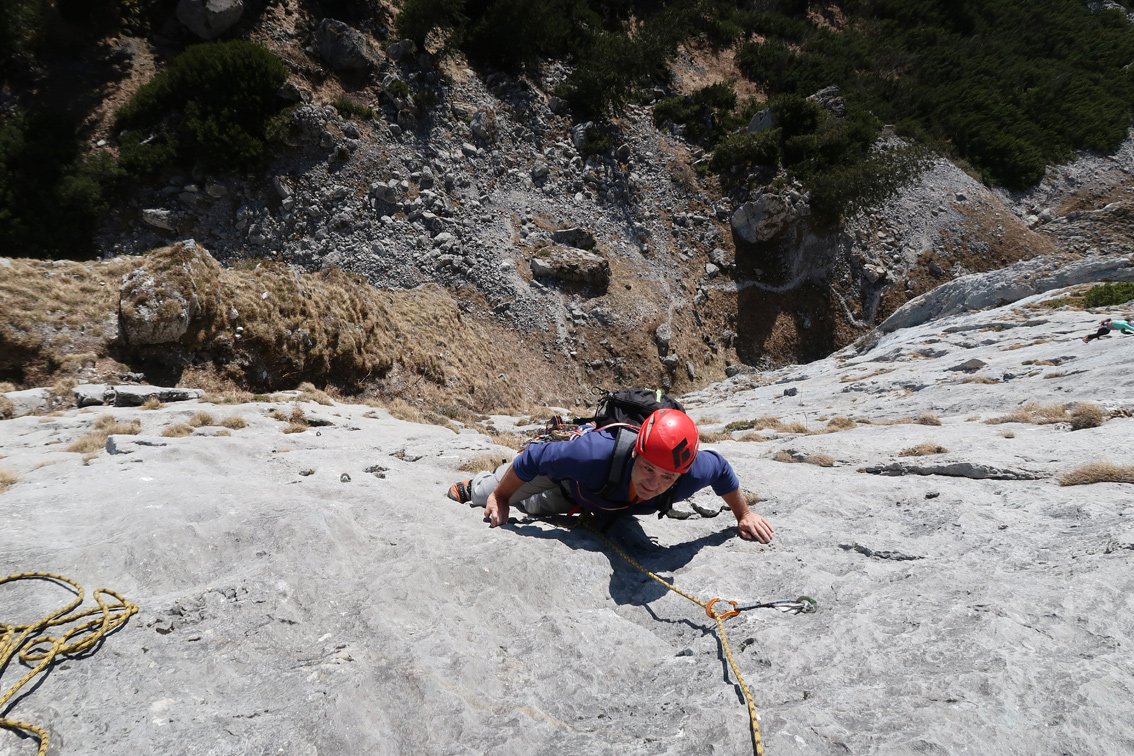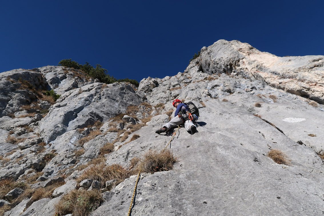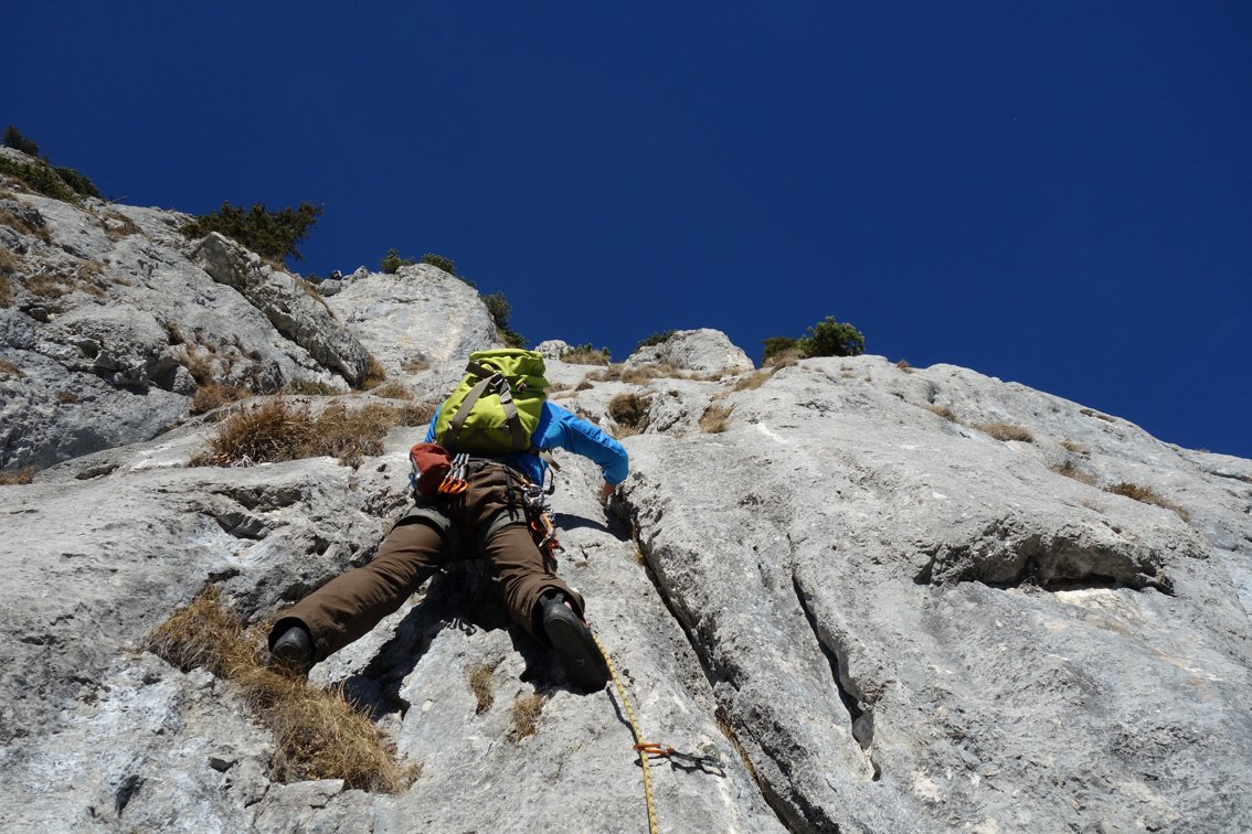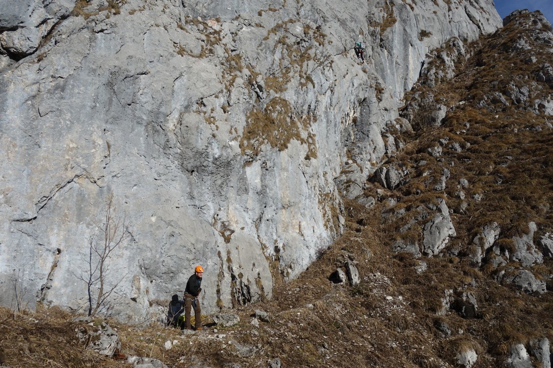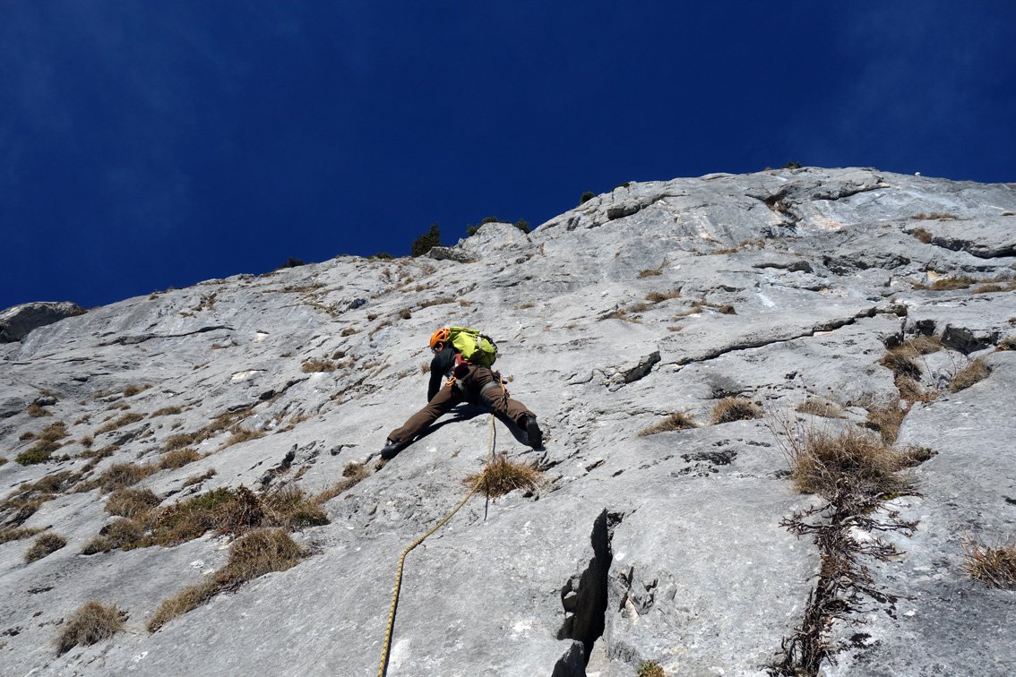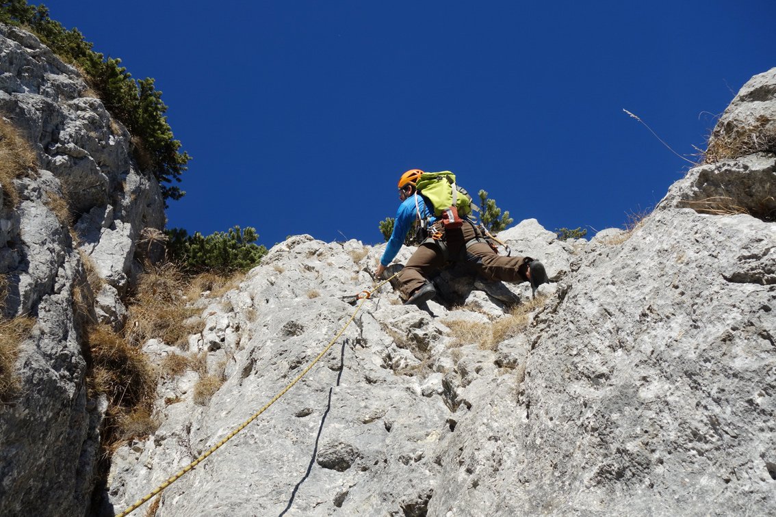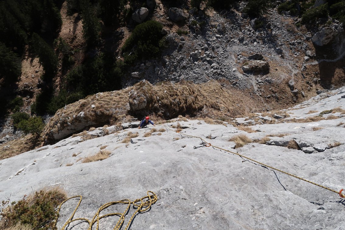 Eine kurze Stelle 7-, sonst meist um 6 in den letzten beiden Seillängen 5.