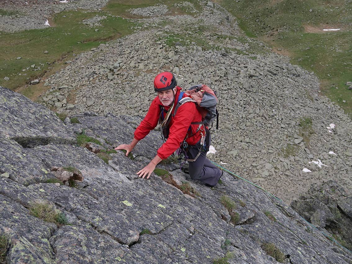 Die ersten drei Seillängen sind durchgehend im oberen dritten Schwierigkeitsgrad.
