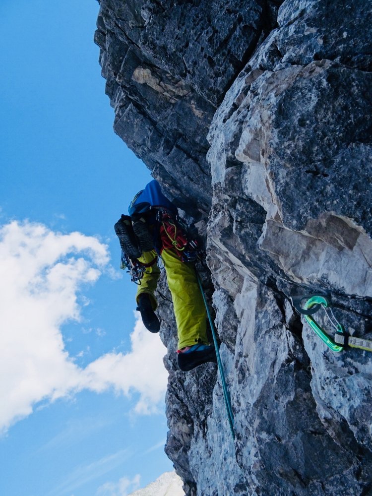 Die zwei Schlüsselstellen können auch A0 geklettert werden.