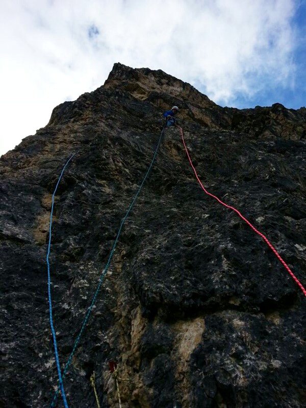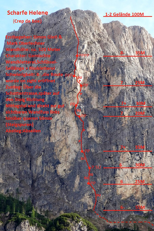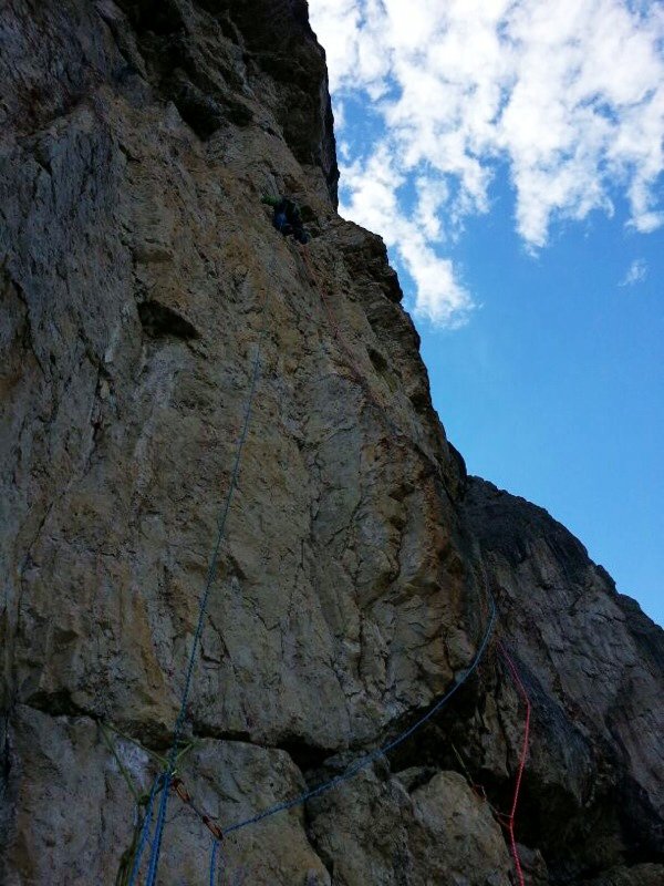 Ernstzunehmende alpine Route, die selber abzusichern ist. Großteils Wandkletterei, die Schlüsselseillänge verlangt jedoch Risskletterei. Einen Bericht über die Erstbegehung findet ihr hier.