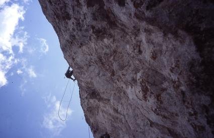 Die ersten 4 Seillängen bieten eine Orgie an Tropflöchern , in den letzten 3 SL. gibt’s weniger scharfen Superkalk. Meist Wandkletterei , manchmal kurze Rißsspuren bzw. Schuppen .