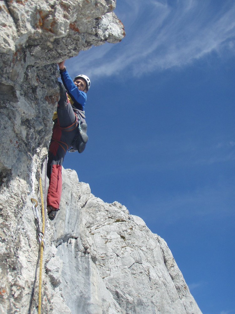 Im Sockelbereich beschert der "im Weg stehende" Treffauer dem Kletterer meist einen schattigen Kaltstart.