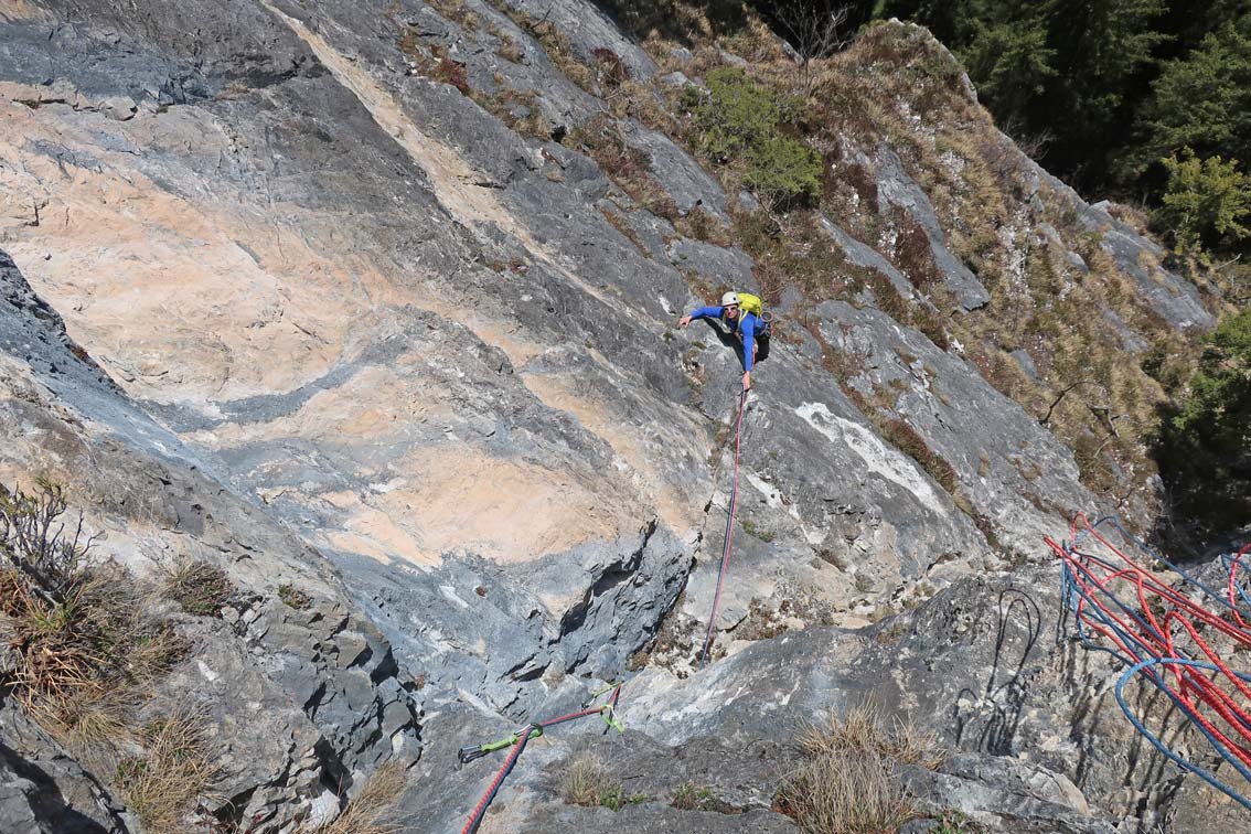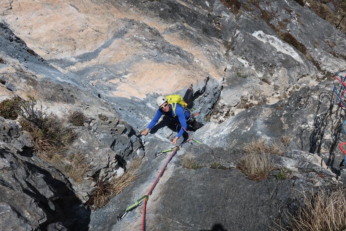 Die Tour ist nur etwas für Leute die auch mit brüchigem Gestein umgehen können - für Plaisirkletterer ist schon beim ersten Bohrhaken (am Ende des Fixseils) Schluss.