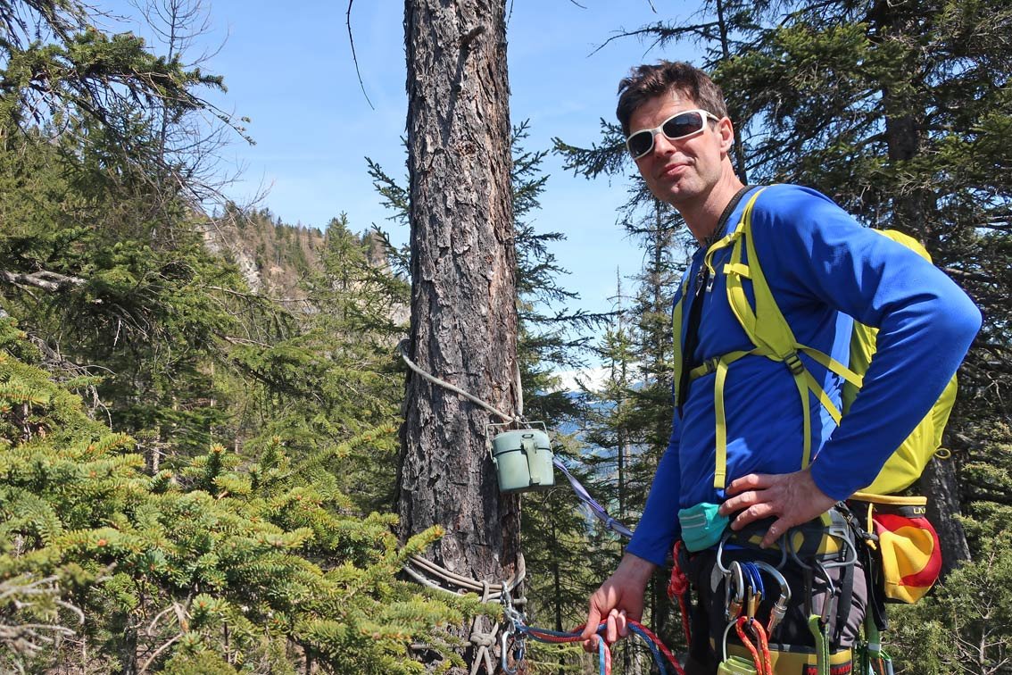 60 m Einfachseil und 10 Expressschlingen und Cams 2 bis 3 für die zweite Seillänge.