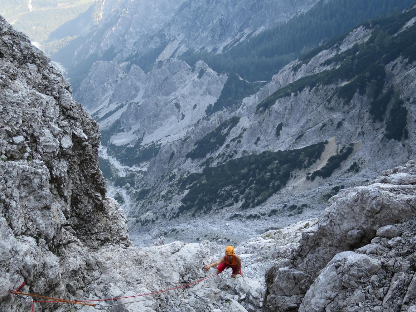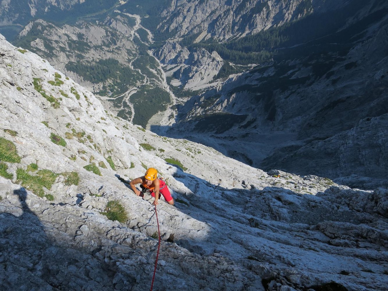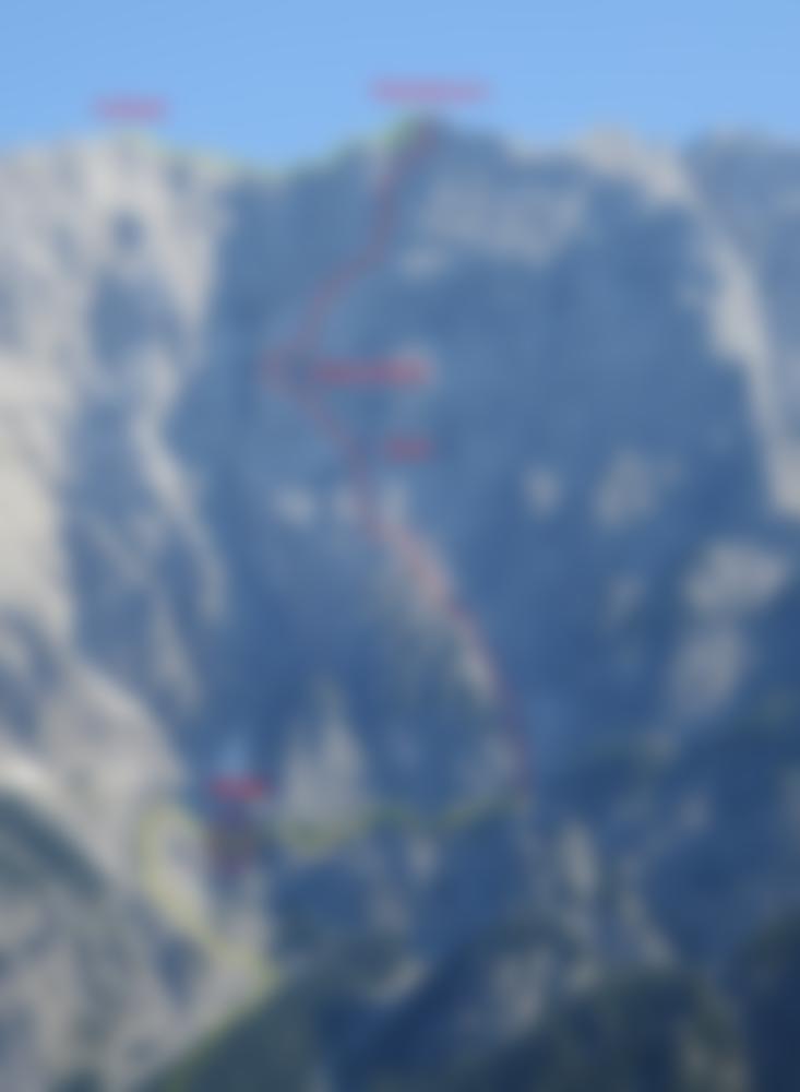 Sehr empfehlenswerte, mit Bohrhaken gesicherte und sogar markierte Tour an der Nordostwand des Ödsteinkarturms. Die gewaltige Wand über dem Haindlkar lockte Ende des 19. Jahrhunderts die besten Bergsteiger an. Am 8. 10. 1893 gelang Robert Hans Schmitt und Ferdinand Siegmund die erste Begehung dieser mächtigen Felswand. Es war nach dem Peternpfad (der bereits im Jahre 1877 erstbegangen wurde) der zweite erschlossene Nordwandanstieg vom Haindlkar aus. Es folgten in den Jahre 1922 und 1932 Routen u.a. von A. Hoeschowsky und V. Größl und H. Pfersmann und A. Kurßa. Dannach geriet diese große Wandflucht viele Jahre in Vergessenheit, bis im Jahr 2011 von Mario Strimitzer und Stefan Schröck wieder wachgeküsst wurde. Das Ergebnis, eine perfekte, sehr lange und auch für den Schwierigkeitsgrad gut abgesicherte Routenkombination, welche das Zeug dazu hat, der Jahn-Zimmer Tour den Rang abzulaufen!