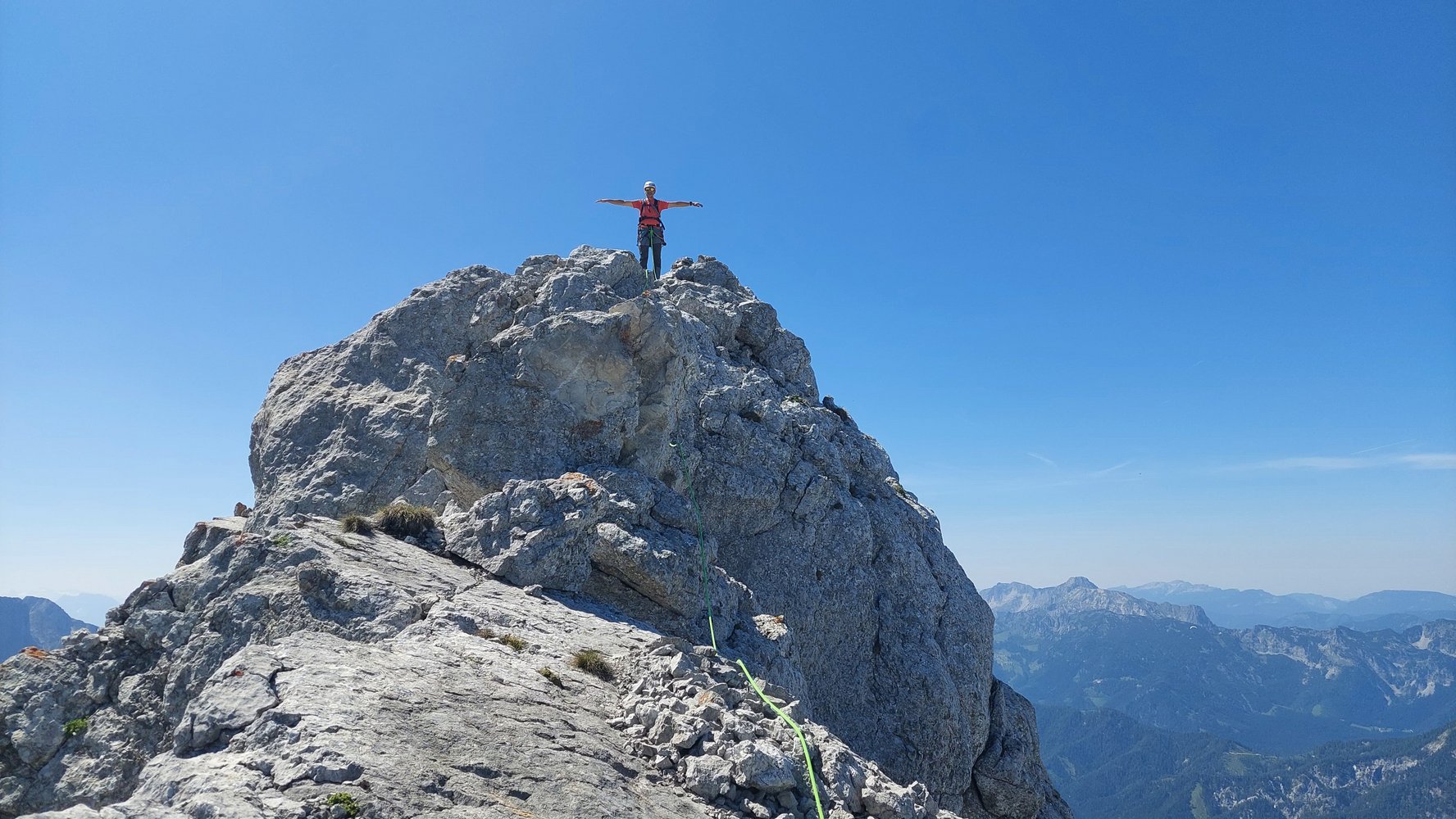 Beim Ausstieg ist diese Tour noch nicht vorbei, denn der Grat zum Festkogel ist heikel und im Vergleich zur Tour auch viel schlechter abgesichert!
