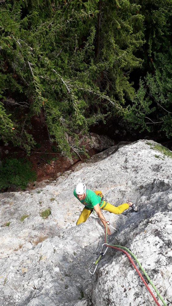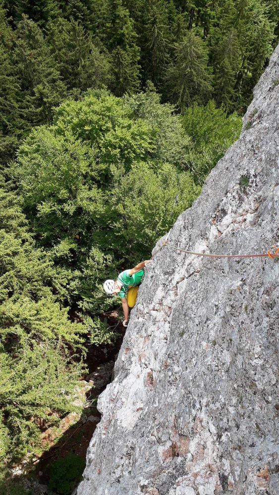 Sehr schöne Neutour rechts von der Ostkante, die zu den besten schweren Burgstall Touren gehört. Drei schöne, steile und sehr kraftraubende Seillängen im besten Fels. Go for it!