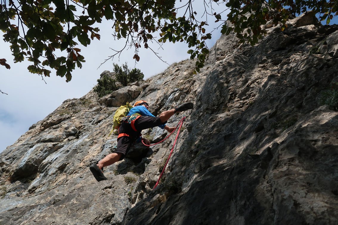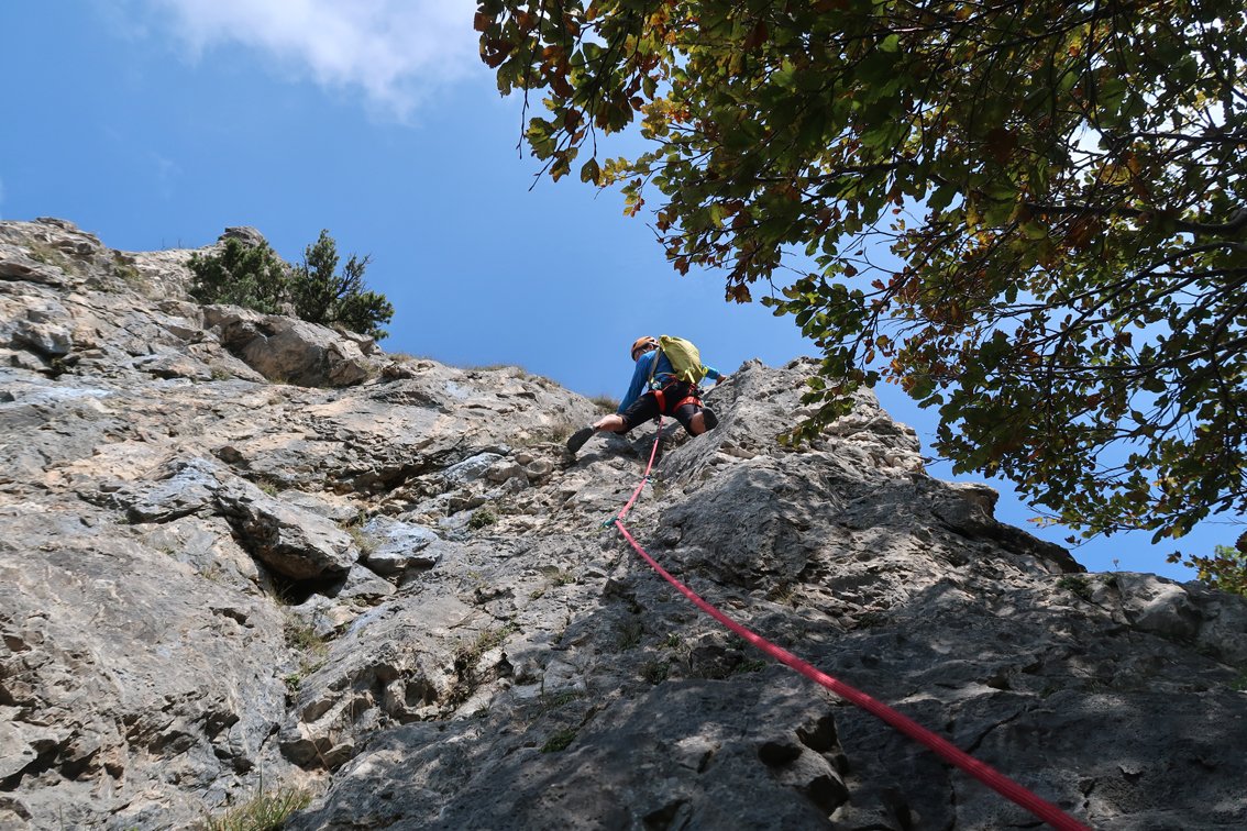 Die schweren Seillängen sind gut gesichert, der leichte und brüchige Grat hat keine Zwischensicherungen.