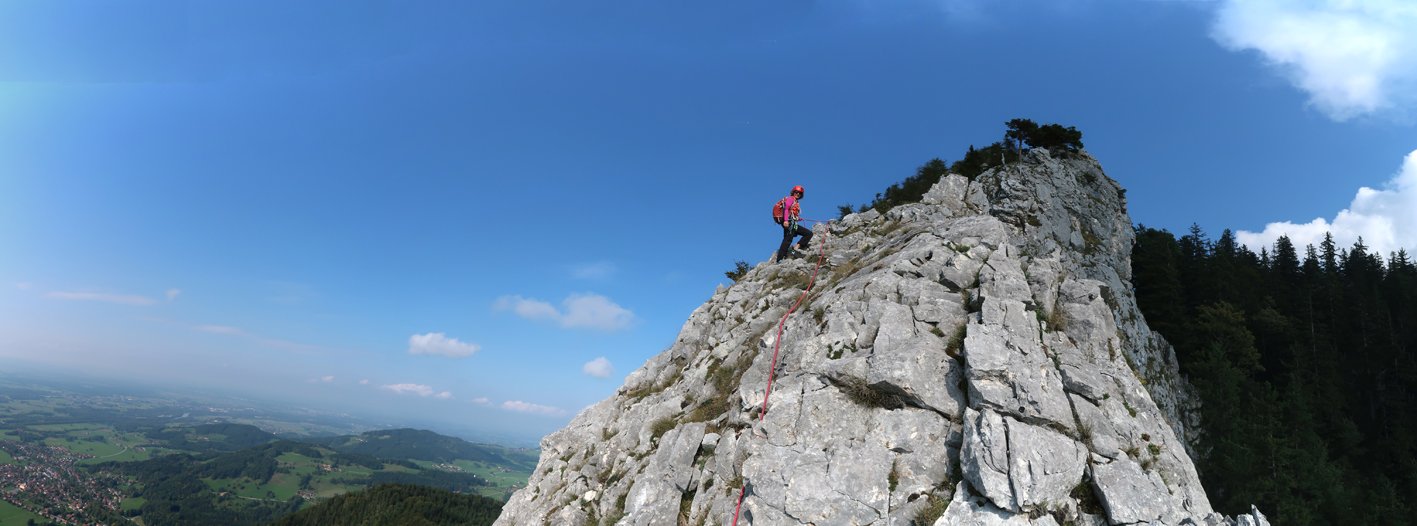 1 x 60 Meterseil, 6 Expressschlingen und ein paar Bandschlingen für die brüchigen Köpfl auf dem Westgrat.