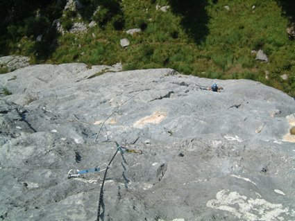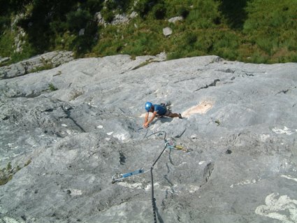 Gehört zu den spektakulärsten Touren am Urlkopf, oben zieht eine sehr ausgesetzte Querung über die Dachzone. Einfach perfekte Tour in dieser Schwierigkeit.