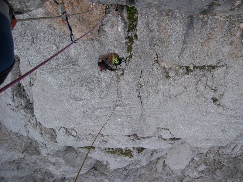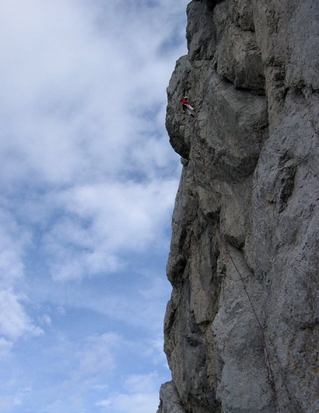 Nach der letzten schweren Seillänge besteht die Möglichkeit über die Route abzuseilen. Dafür sollte man aber mindestens 2 Stunden einplanen.