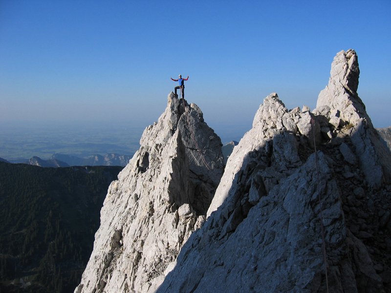 Eine weitere Alternative für Kletterer, die auf dem Gipfel aussteigen möchten - was nach einer dieser großartigen Touren sicherlich empfehlenswert ist - wäre der Abstieg über das Gimpelhaus nach Nesselwängle. Wer hier ein Auto/Fahrrad deponiert hat, ist nach 5 Kilometer wieder an der Liftstation „Füssener Jöchle“ in Grän.