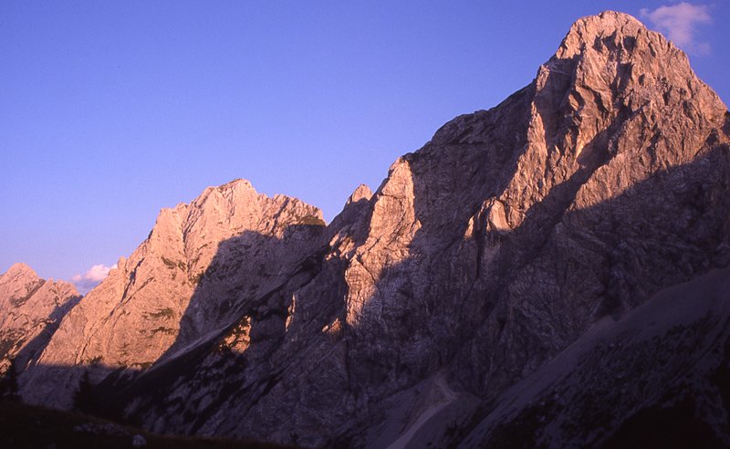 Direkt von der Hütte (dorthin in ca. 2 Stunden) folgt man dem Forstweg in Richtung Tal. Nach der ersten großen Kurve geht es durch einen kleinen Wald. Über das sich anschließende Geröllfeld hinauf zum Einstieg. Ca. 30 Minuten von der Hütte.