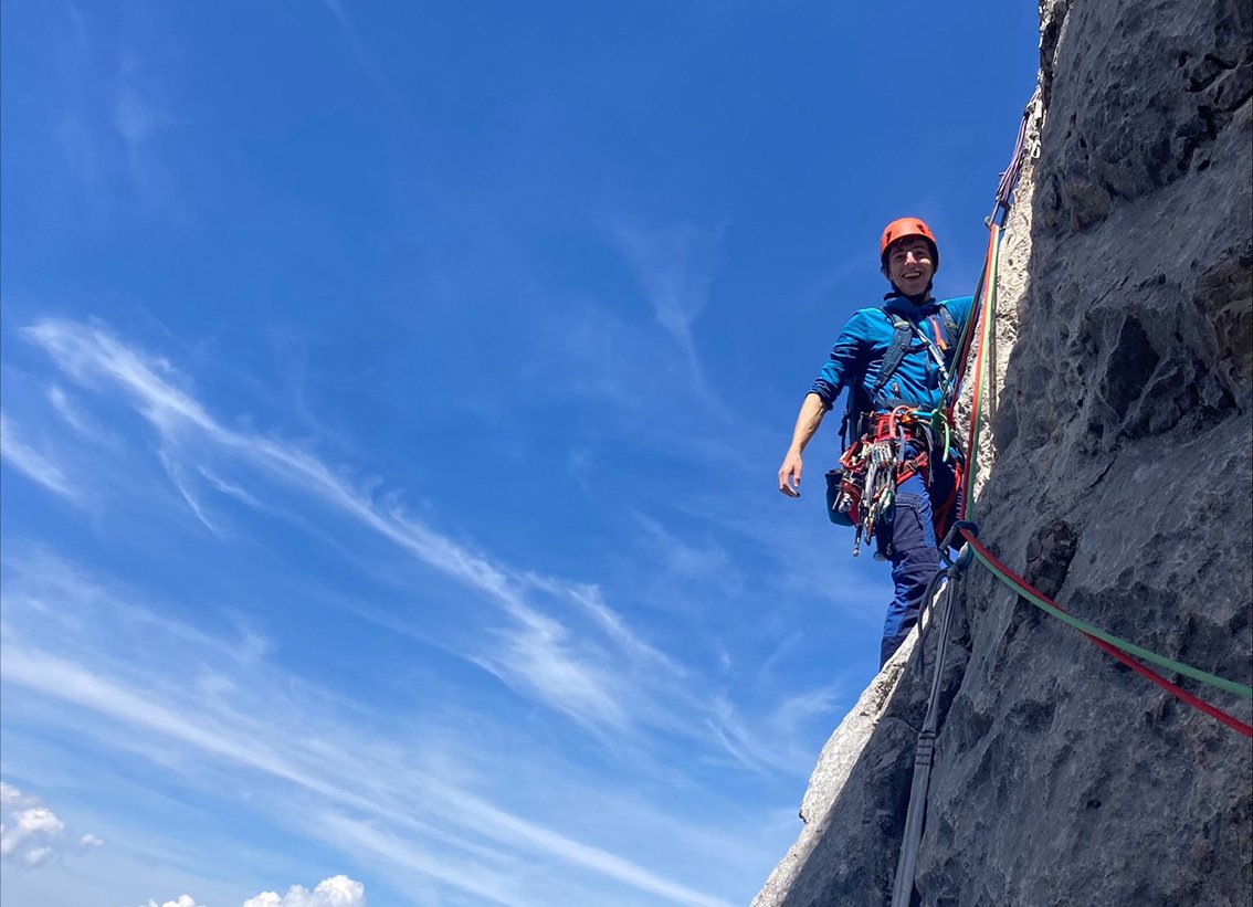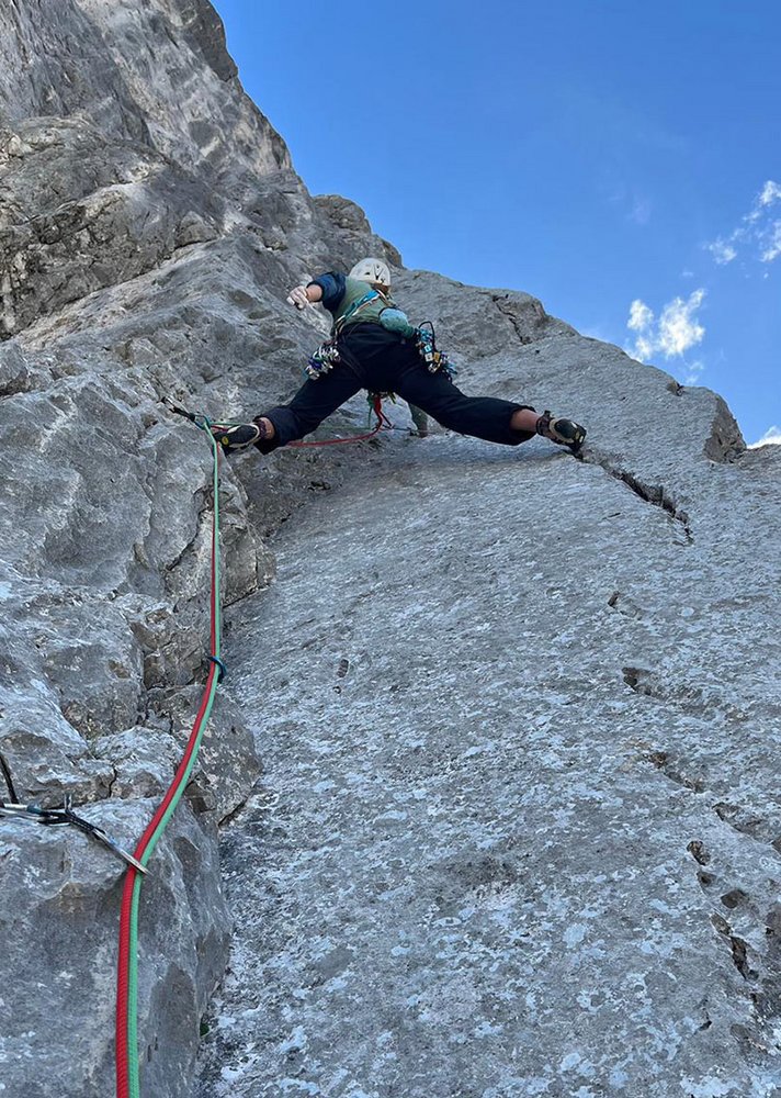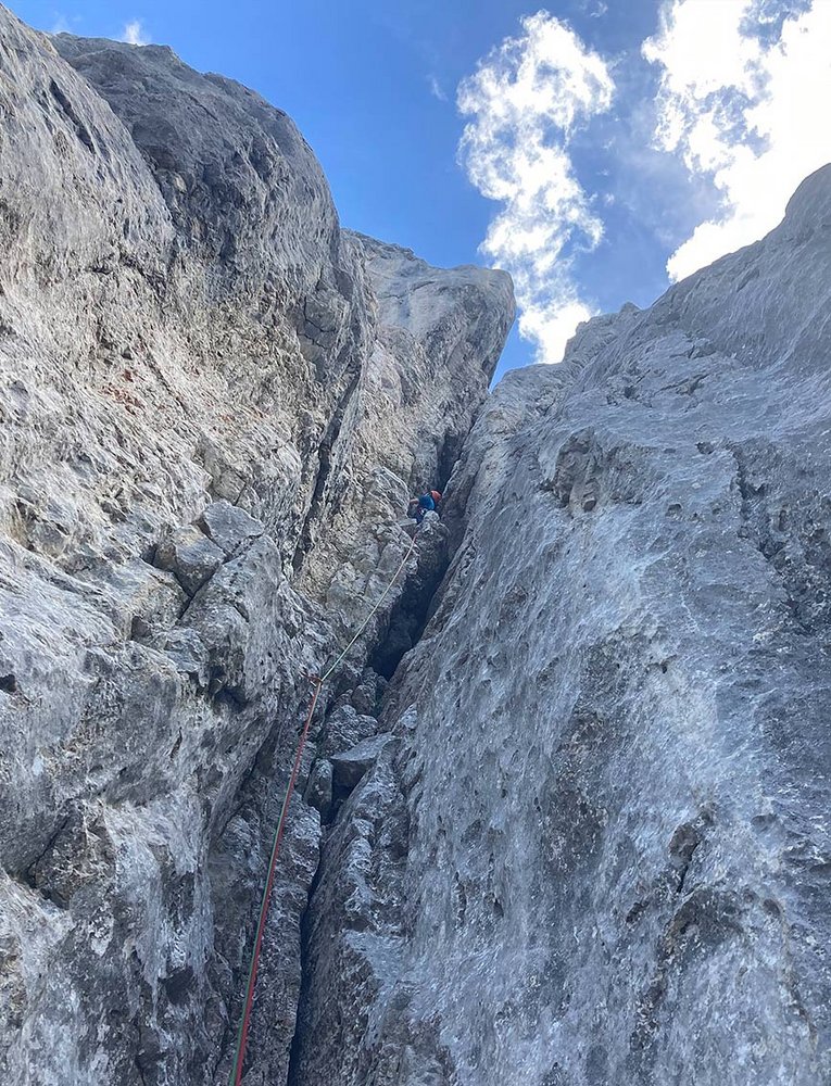 Alpiner Klassiker der abwechslungsreich auf den Predigtstuhl-Mittelgipfel führt. In der Tour gibts alles von Verschneidungen, einen Kamin und eine Querung mit Abkletterpassage. Die steile 6+ Verschneidung ist schon etwas schmierig, der Rest der Tour aber noch sehr brauchbar.
