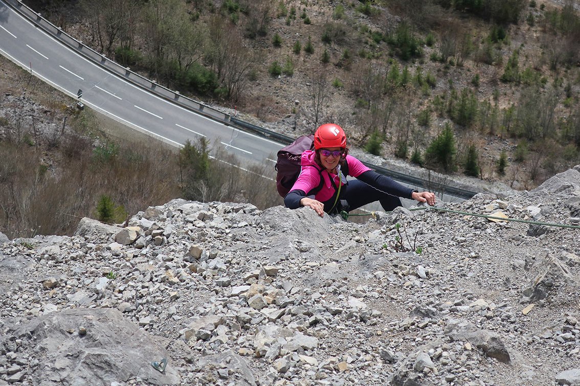 1 x 50 m Einfachseil, 12 Expressschlingen und vor allem einen Helm.