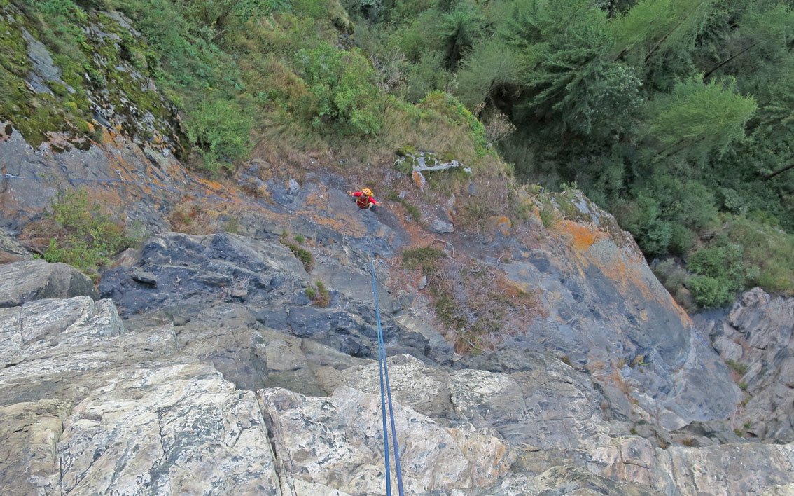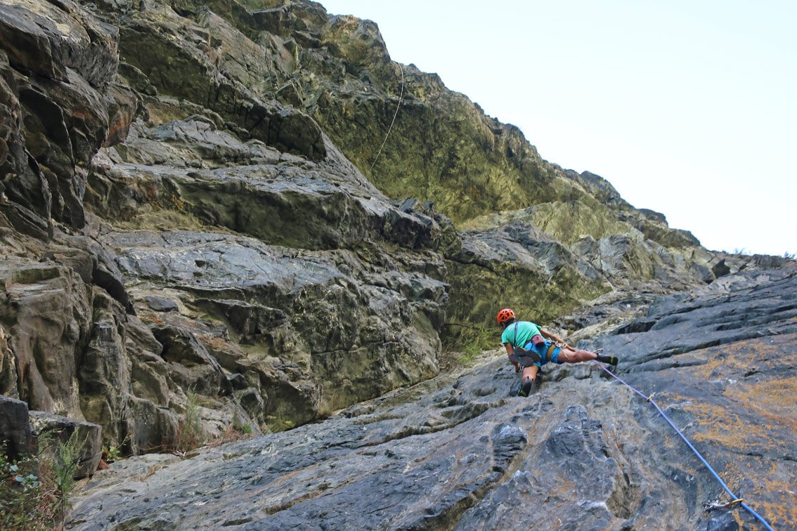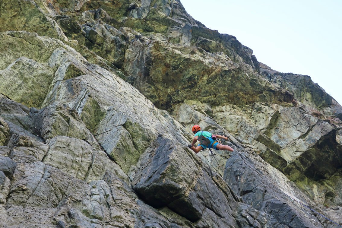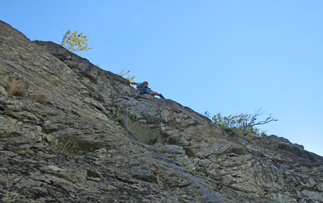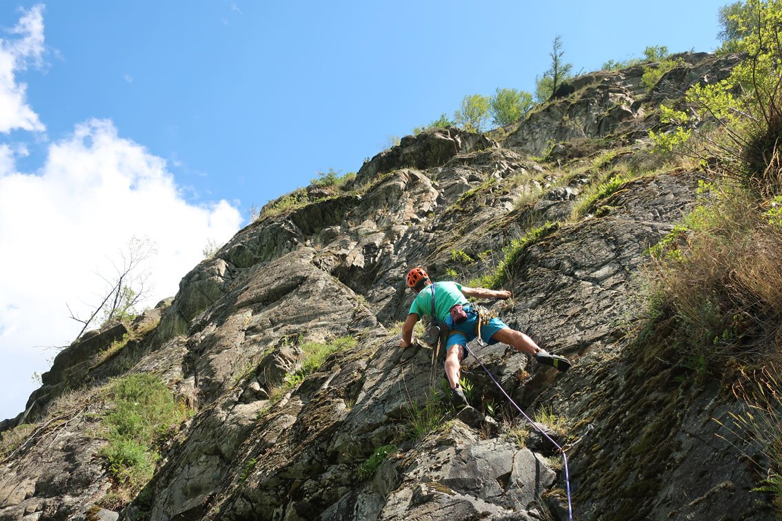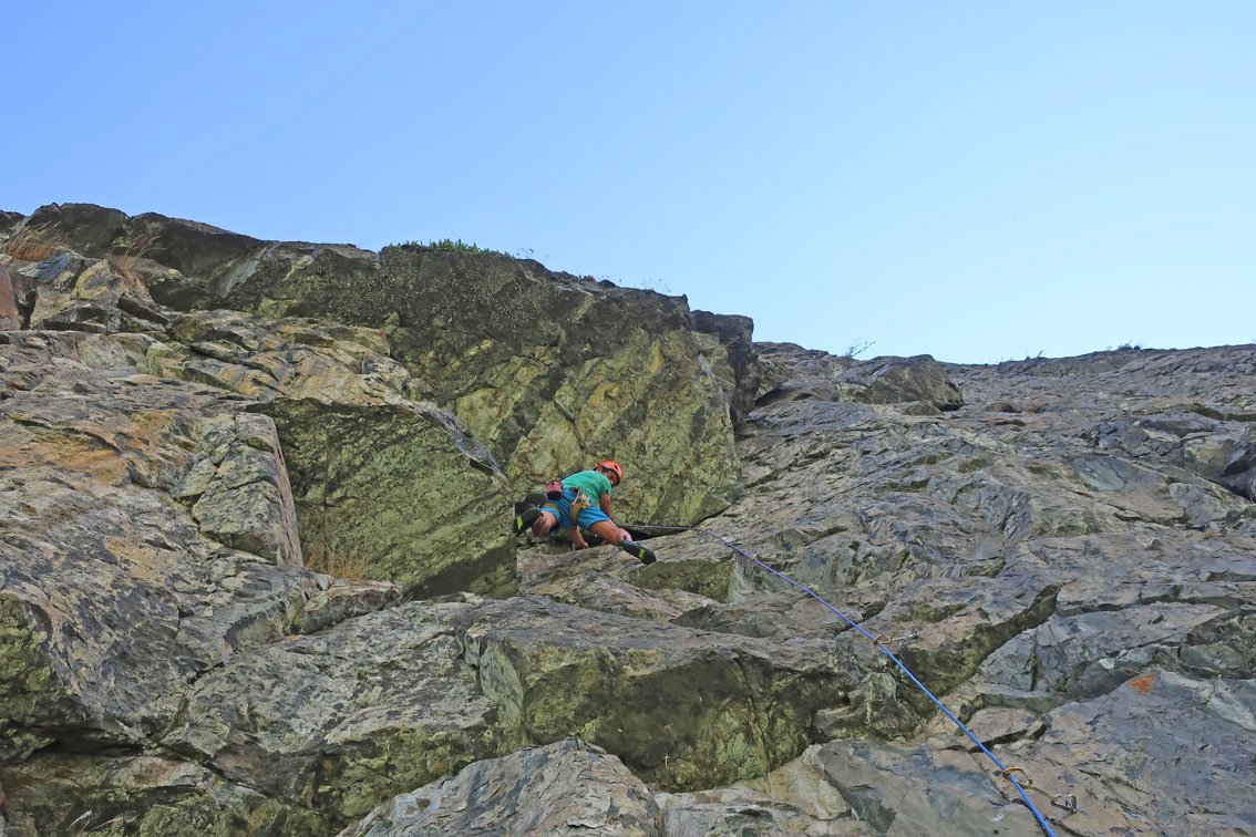 Unbedingt zwei trockene Tage abwarten. Bei Nässe sind die oberen flachen Seillängen wegen des Mooses extrem unangenehm.