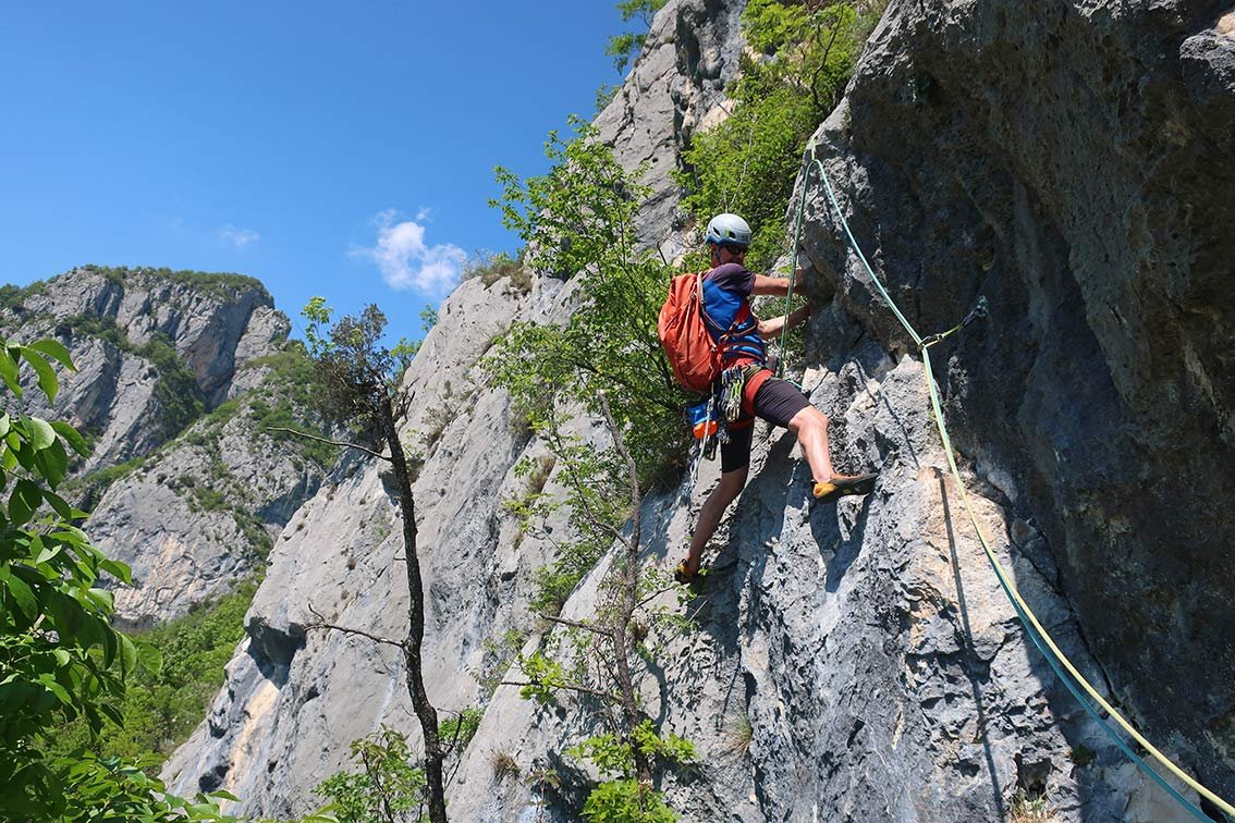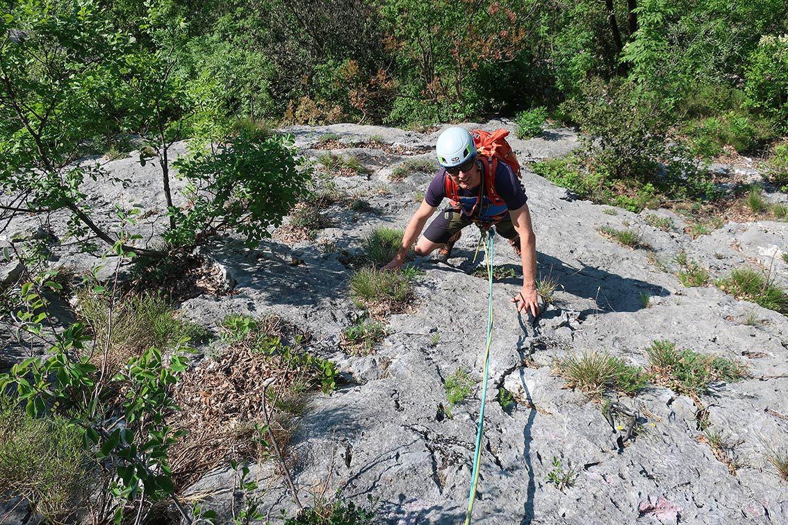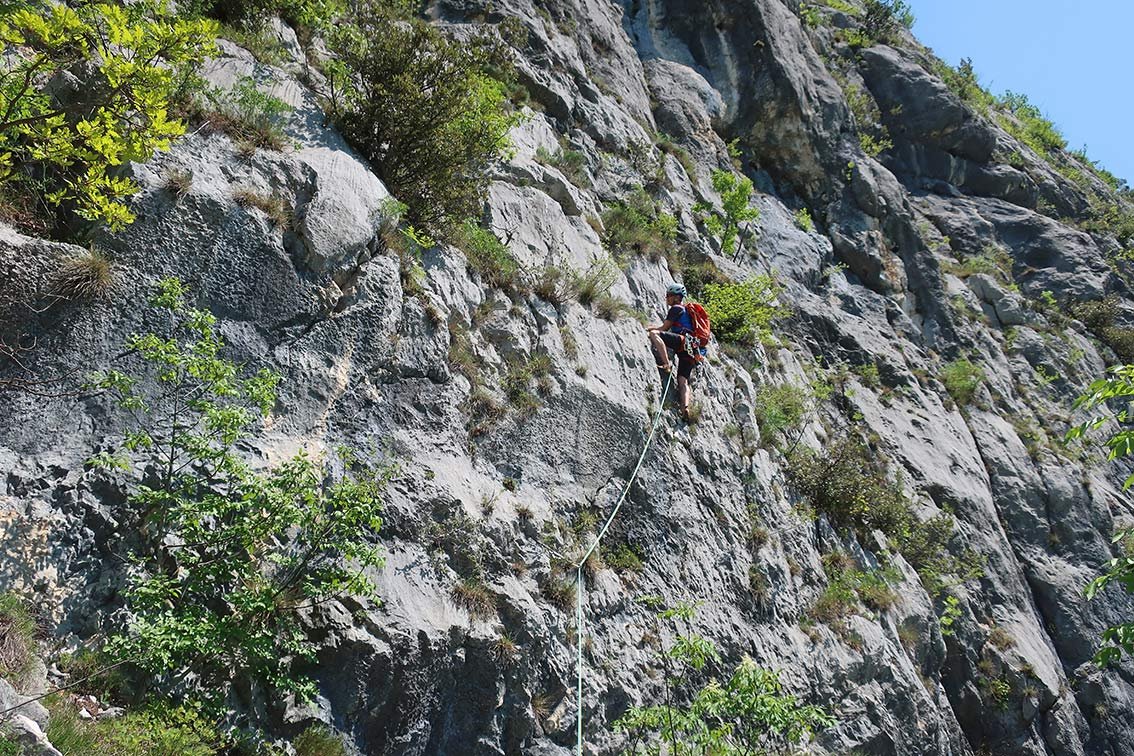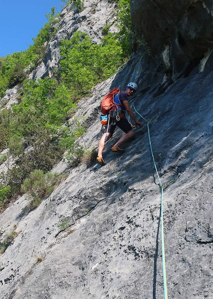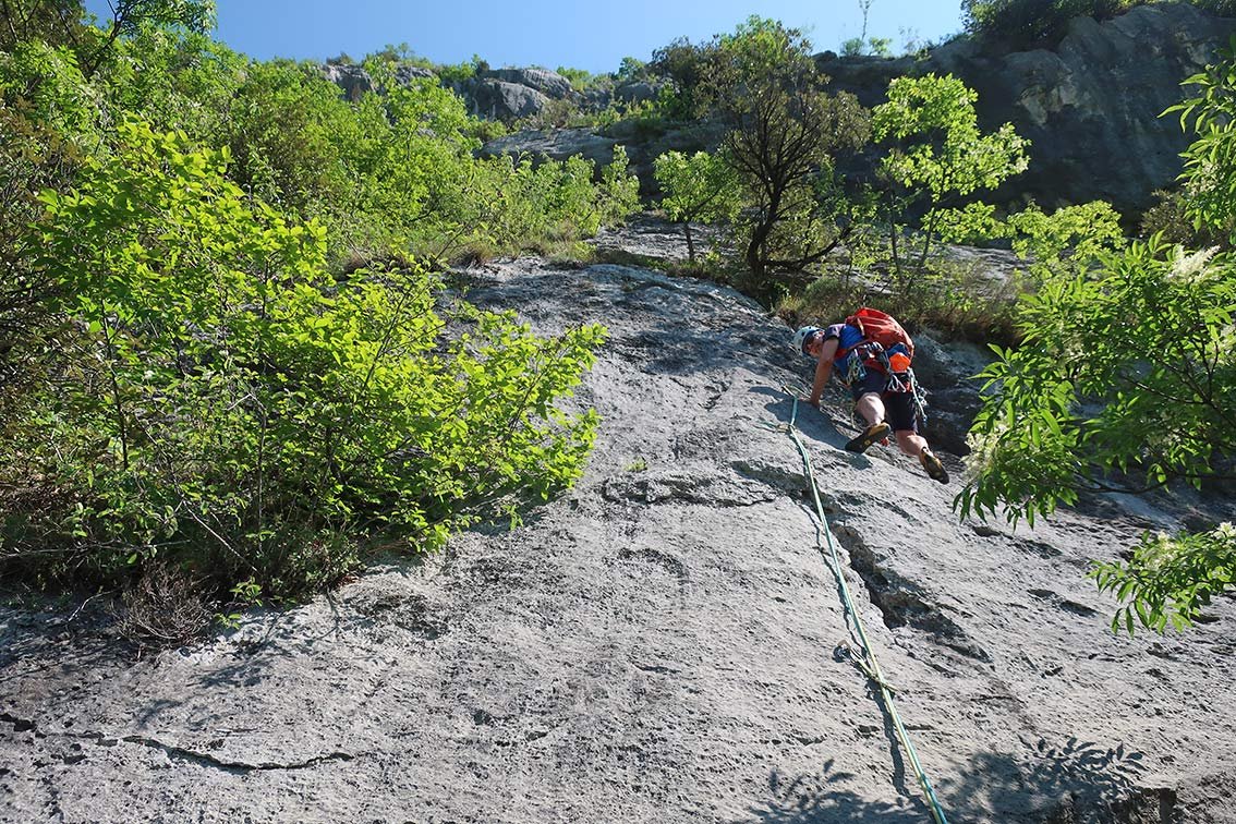Achtung: Bei weitem nicht so gut abgesichert wie die unteren Val di Ledro Mehrseillängentouren - KEINE Plaisirkletterei!