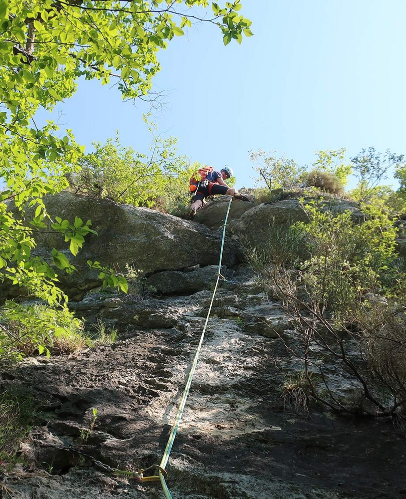 Bei Nässe sind sowohl der steile Zustieg, als auch die Klettertour nicht zu empfehlen.
