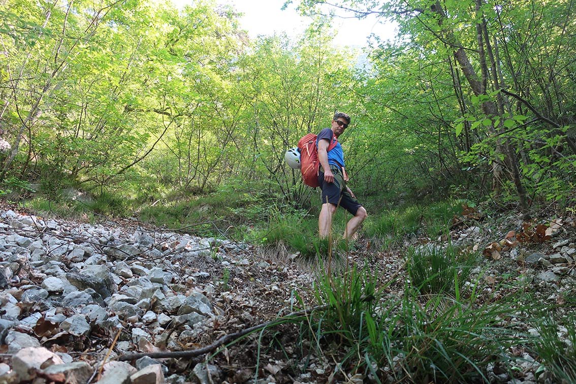 Da die Route recht lang ist, macht es wenig Sinn, über eine der unteren Ledro-Mehrseillängentouren zuzusteigen.