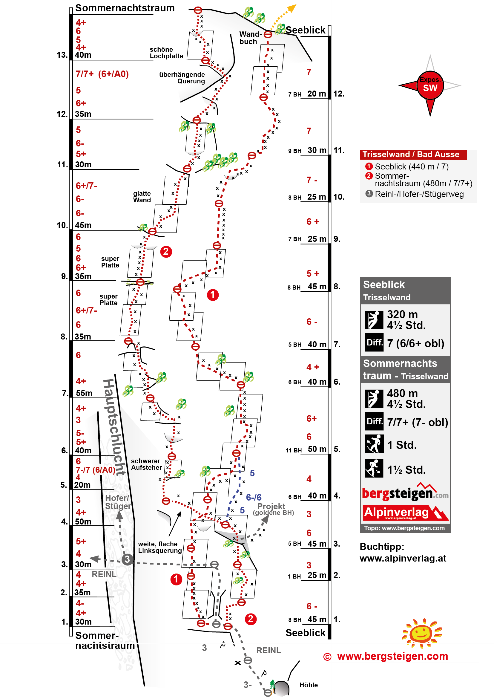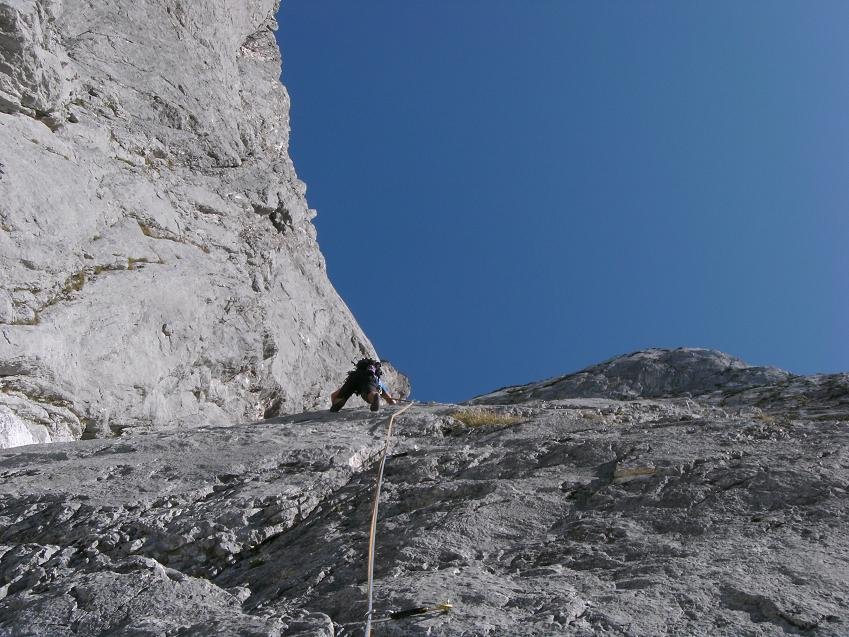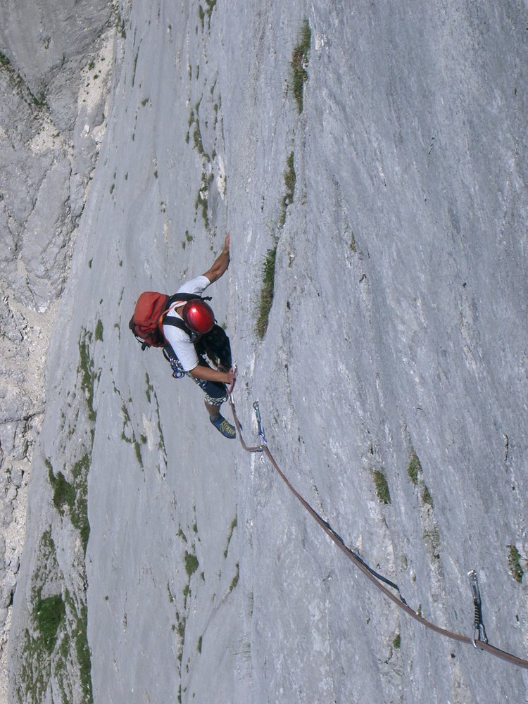 Gesamt ist in der Wand auf Steinschlag zu achten – die ersten beiden Zustiegsseillängen sind etwas brüchig !!