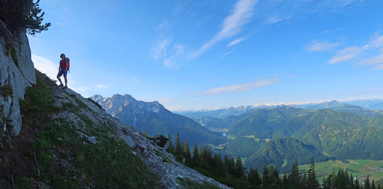 Vom Parkplatz „Steinplatte“ zur Stalleralm und auf dem Wanderweg in Richtung Wemeteigen-Alm. Man quert unter der Gondelbahn, am Ende der Forststraße zweigt links ein Wanderweg ab, auf dem hinauf zum Wandfuß. Dort nach rechts in Richtung Klettersteig. Zu dem Beginn der markanten Rinne aufsteigen, wo sich auch der Einstieg befi ndet. Alternative: Von der Bergstation über einen Klettersteig „Gamssteig“ zum Wandfuß absteigen und zum Einstieg queren (ca. 20 Min.). Tipp: Mit dem MTB kommt man gut bis zur Bergstation Kammerkör (Triassic Park).