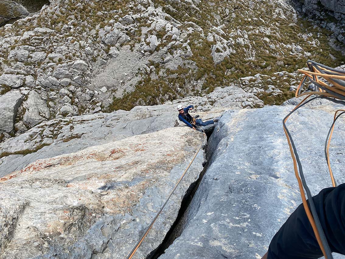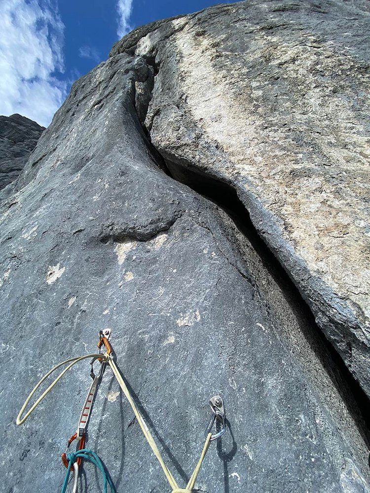 Die eigentliche Route endet nach der zweiten SL, für die dritte SL gibt es mehrere Varianten die alle im 6. und 7. Schwierigkeitsgrad liegen.