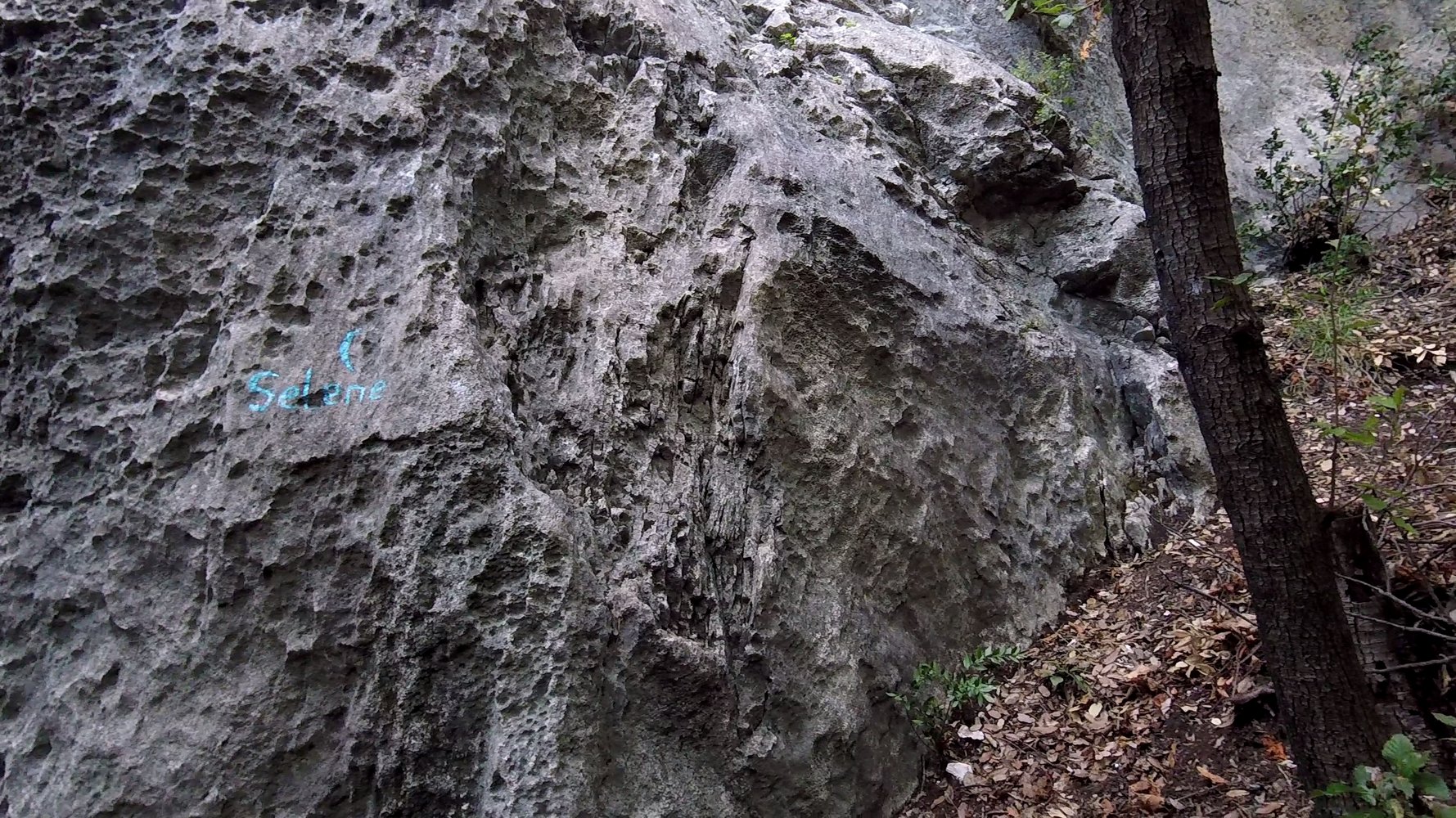 Direkt gegenüber vom Gasthof Laterna steht eine Kapelle an der Straße, rechts davon über die Mauer und auf einem Pfad durch den Buschwald hinauf zur Felswand. Dort etwas nach links zum Einstieg (der Name "Selene" ist angeschrieben).