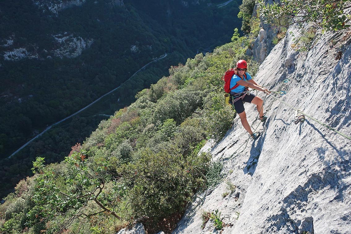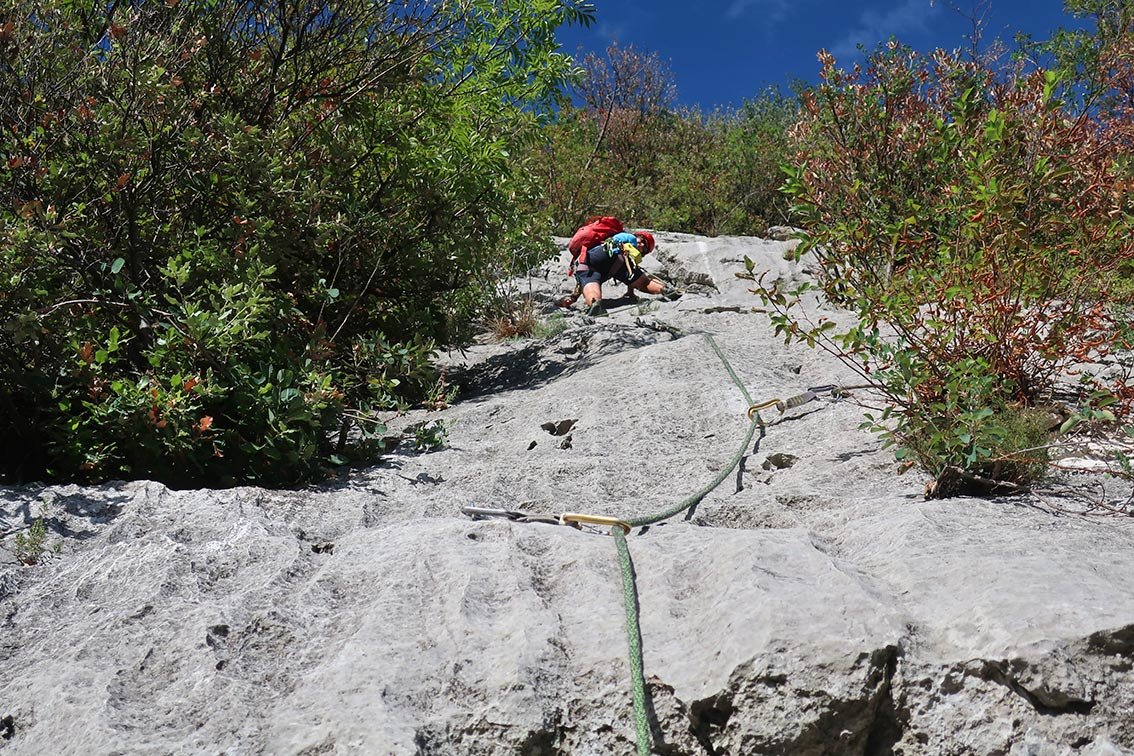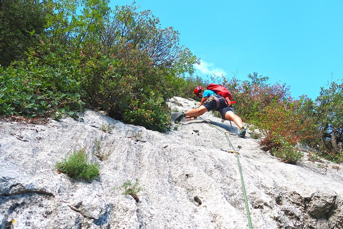 Die Semiramide im Val di Ledro ist eine recht abwechslungsreiche Tour. Der Anstieg sucht sich geschickt entlang von Platten den besten Fels durch die ca. 100 Meter hohe Felswand. Schöne Platten, eine originelle, lange Querung und steilere Stufen wechseln einander ab. Gute Tour, um den untersten Mehrseillänge-Sektor mit den lange, leichten oberen Touren zu verbinden. Ist nicht ganz so überlaufen wie die Regina del Lago und ein guter Ausweichtipp mit Seeblick.