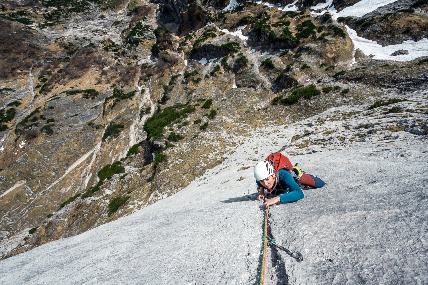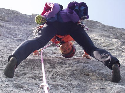 Vom Blausandpfeilergipfel bzw. letzten Standplatz zum Rucksackdepot queren und zurück wie Zustieg. Die letzte Bahn fährt ca. um 17.00 Uhr (eventuell nach Änderungen fragen !).