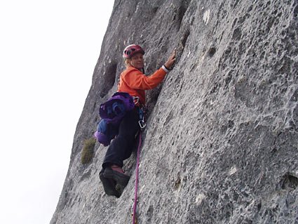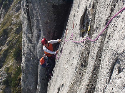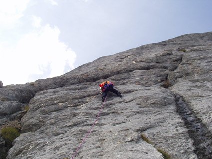 Ausgesprochen schöne Kletterei an wasserzerfressenem, rauhem, festem (mit kleinen Ausnahmen im oberen Teil, die jedoch nicht stören) und mit vielen Löchern durchsetztem Fels. Grossteils handelt es sich um Plattenkletterei von unterschiedlicher Neigung, die von kurzen Rissstellen unterbrochen wird. Nach Regen bis auf wenige Meter schnell trocken. In der 2. Sl. wird die Route "Weder Blau Noch Sand" (VI+) gekreuzt - rechts halten; in der 6. Sl. Fluchtweg (Bh) zu "W. B. N. S." nach links, "Sesam Öffne Dich" zieht nach rechts. Die Tour ist durchgehend mit Bohrhaken sehr gut gesichert. Der 7te Grad sollte geklettert werden können, um Spass an der Tour zu haben.