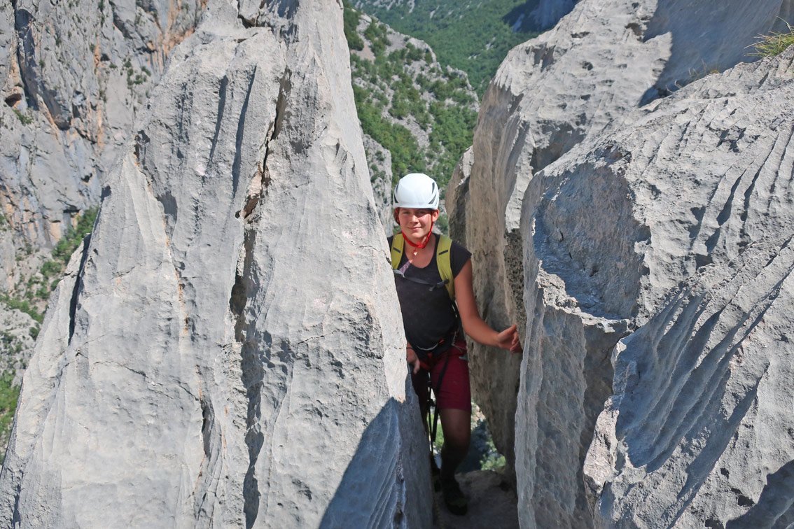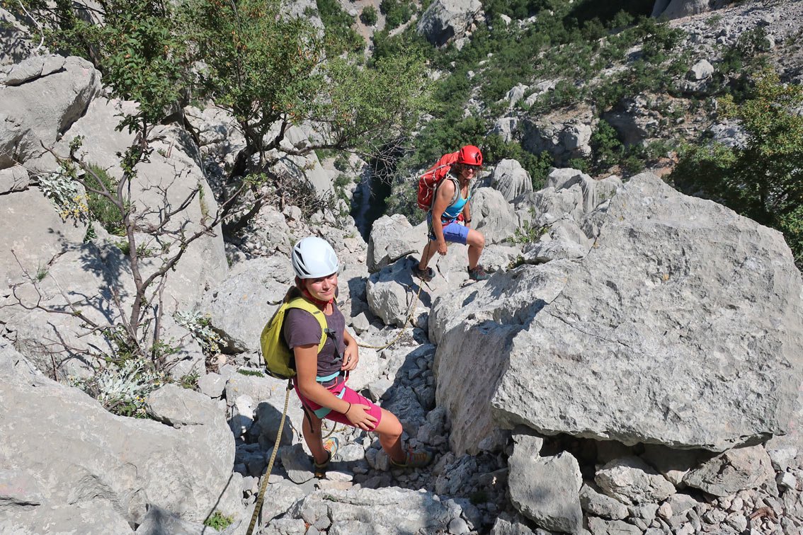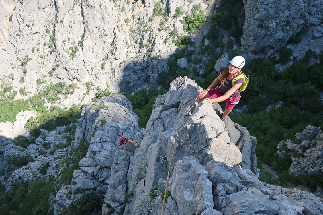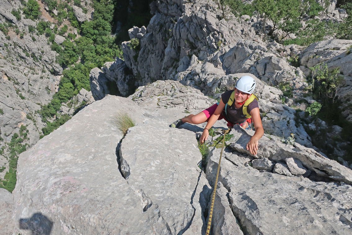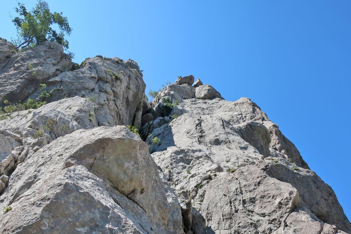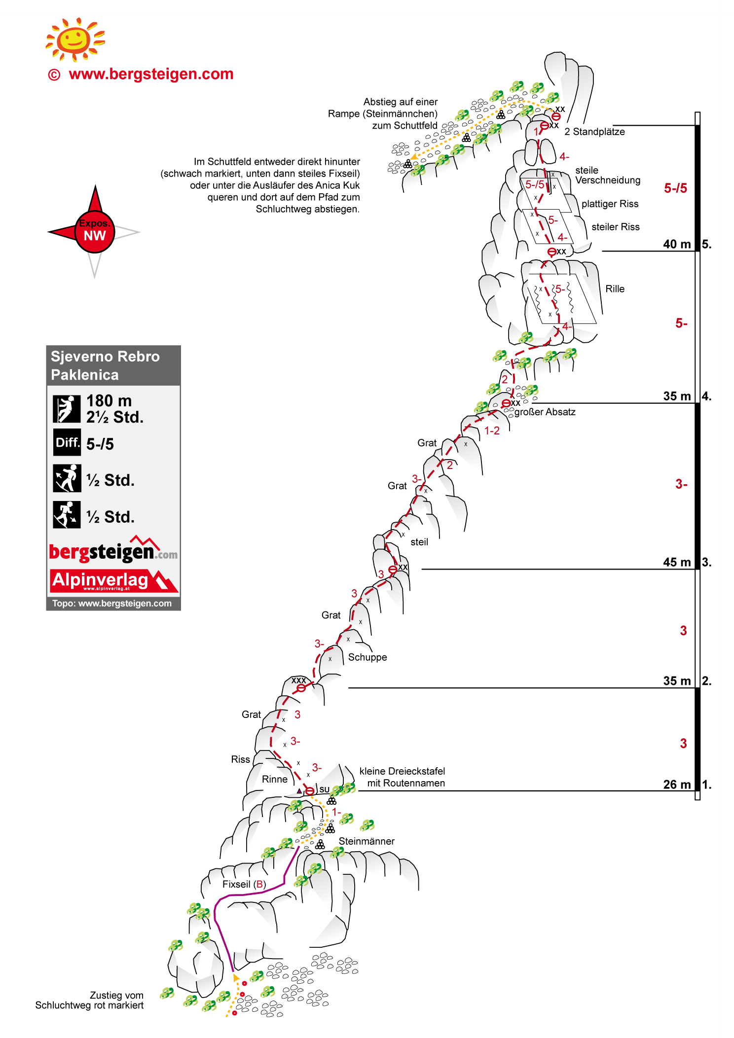 Schöne, nordseitig ausgerichtete Grattour, die nach oben hin immer besser wird! Der Anstieg beginnt leicht - unten klettert man auf dem Grat, oben dann auf fantastischen Platten und an einer Verschneidung, am Ende erreicht man durch einen Felsspalt den letzten Standplatz. Neben dem Klassiker „Nosorog“ am Schluchteingang ist die Rebro eines der Highlights im unteren 5ten Schwierigkeitsgrad.