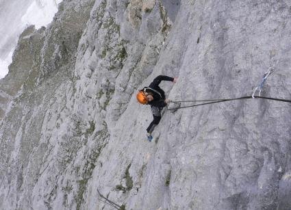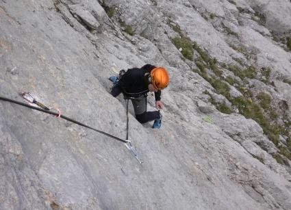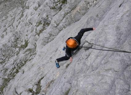 Schöne Sportkletterroute im besten Wetterstein Felsen. Die Route ist vollständig mit Bohrhacken abgesichert, weder Keile noch Friends werden benötigt. Die Schüsselstelle führt durch den grauen Plattenpanzer in der Wandmitte. (Die siebte Seillänge) Nach einem Riss geht’s leicht nach links und dort wichtig führ einen Rotpunkt versuch, links der Bohrhacken klettern auf vier Meter, sonst wird es schwieriger. Der Rest der Route ist steile Wandkletterei im spitzen kompakten Felsen. Am ENDE der Route ist ein Wandbuch von dort über die Route Abseilen, alles ist eingerichtet.