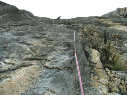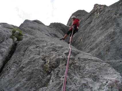 Zwei Seillängen sind 8- und der Rest so um die sieben, nur einmal im Schroffen so um die 2 – 4.