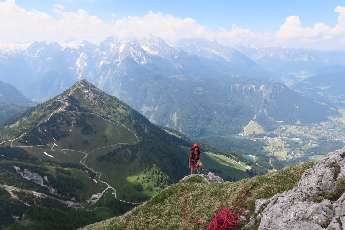 Die Südwestabbrüche unterhalb des Hohen Bretts galten lange als Geheimtipp in der lokalen Kletterszene. Es hat aber nicht lange gedauert bis sich herumgesprochen hat, dass man selten so viel schöne Wasserrillenplatten auf engen Raum findet wie an den Felsen oberhalb der Mitterkaseralm. Die gut eingerichtete Route ist an den Ständen mit je einem Bohr- und Klebehaken gesichert und ausreichend mit Zwischenhaken (alles BH) versehen. Der schöne Anstieg hat hauptsächlich Platten- und Wasserrillenkletterei zu bieten, die Kletterei wird nach oben hin etwas steiler. Fazit - alpines, leichtes Sportklettern vom Feinsten in einer tollen Umgebung, mit schönem Ausblick auf den mächtigen Watzmannstock!