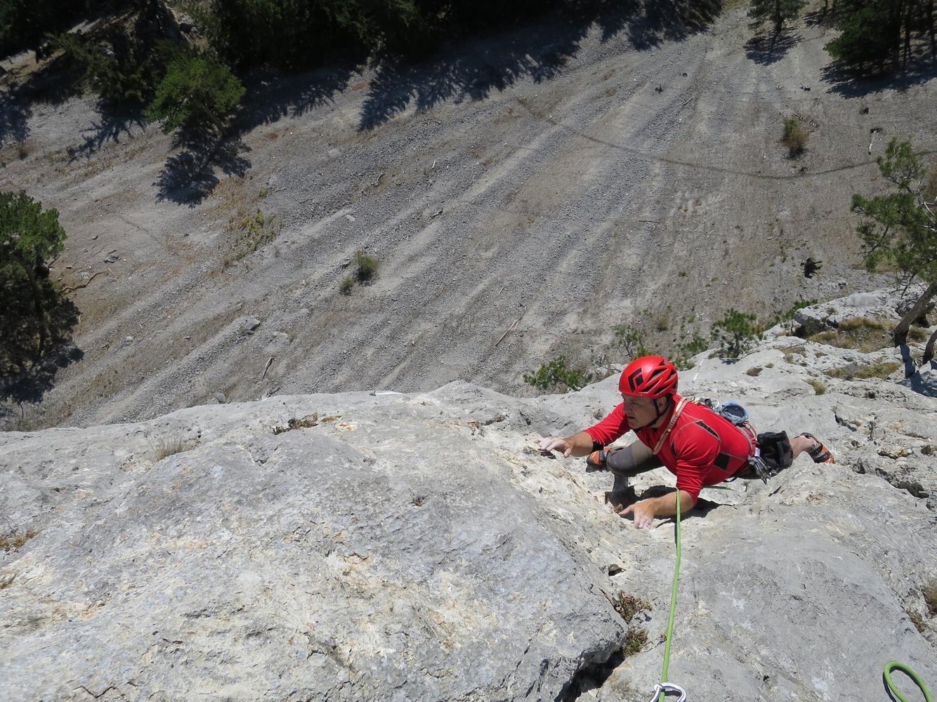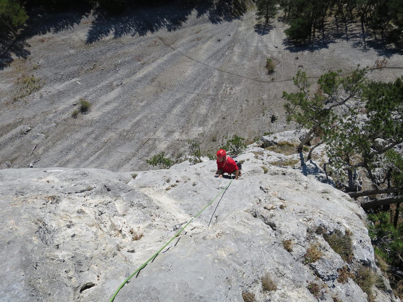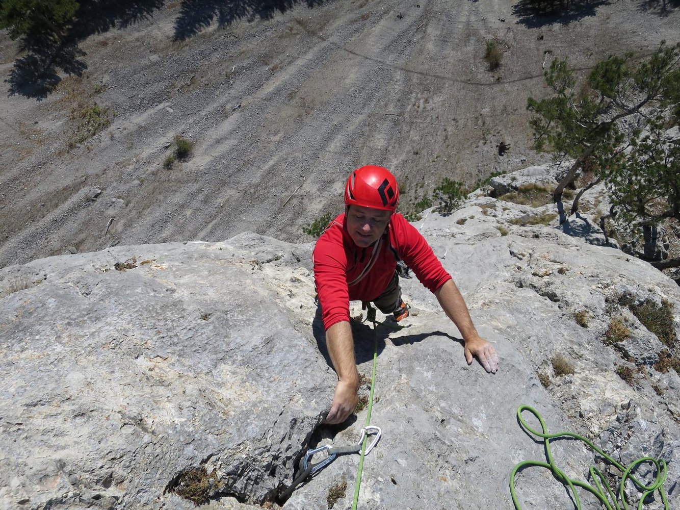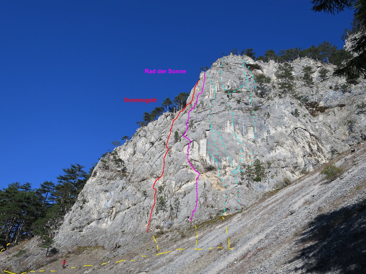 Schöne und steile dreiseillängen Kletter Tour, die recht konstant im sechsten Grad verläuft. Der Fels ist großteils gut, stellenweise aber auch etwas splittrig. Die Tour wird nach oben hin aber immer besser und ist solide, aber doch etwas weiter abgesichert. Die südliche Ausrichtung der Wand erlaubt das Klettern auch an kühleren Tagen!