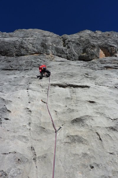 Die Tour ist gut, aber sehr fordernd eingebohrt. Jeweils die ersten Haken der einzelnen Seillängen sind sehr hoch gesetzt, was zum Teil wirklich ungut ist.