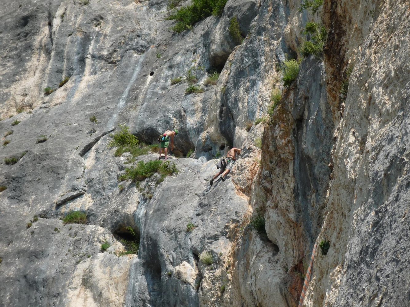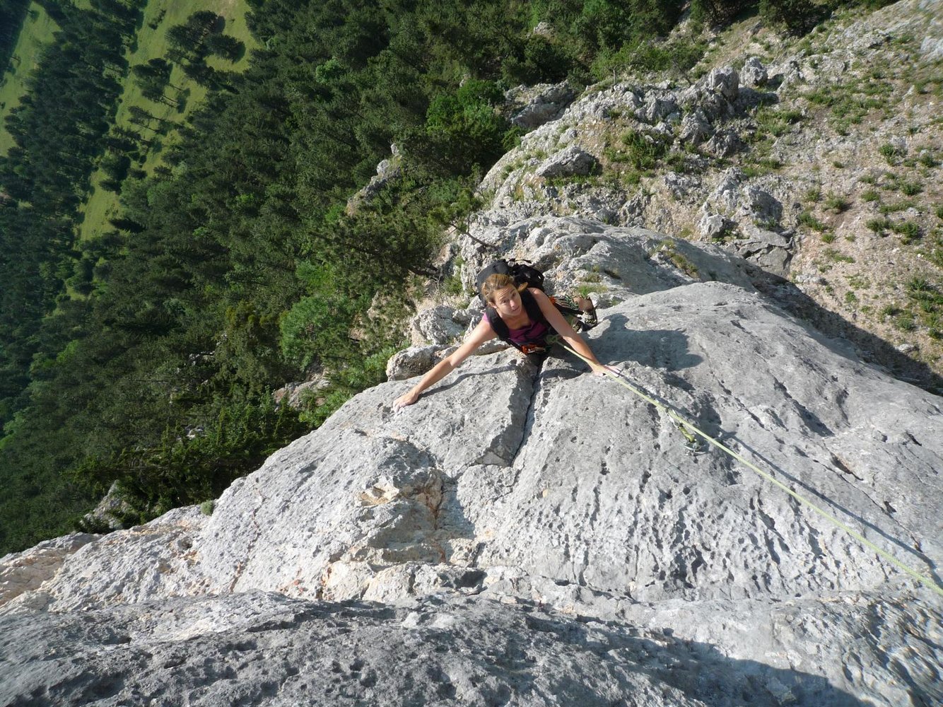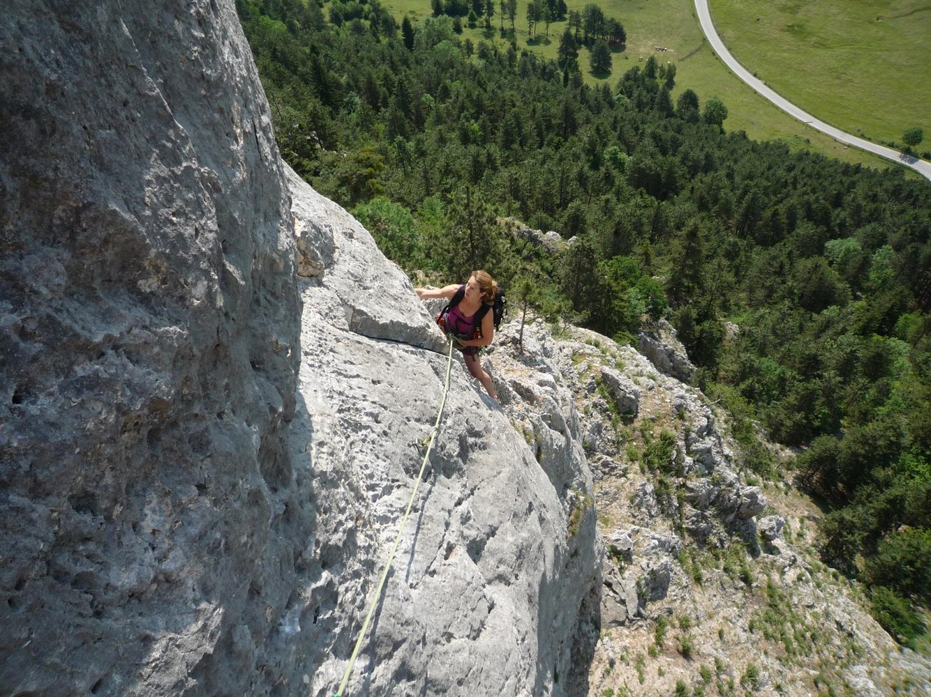 Drei Stellen 6+-, sonst 5-6, die letzten beiden Seillängen leichter