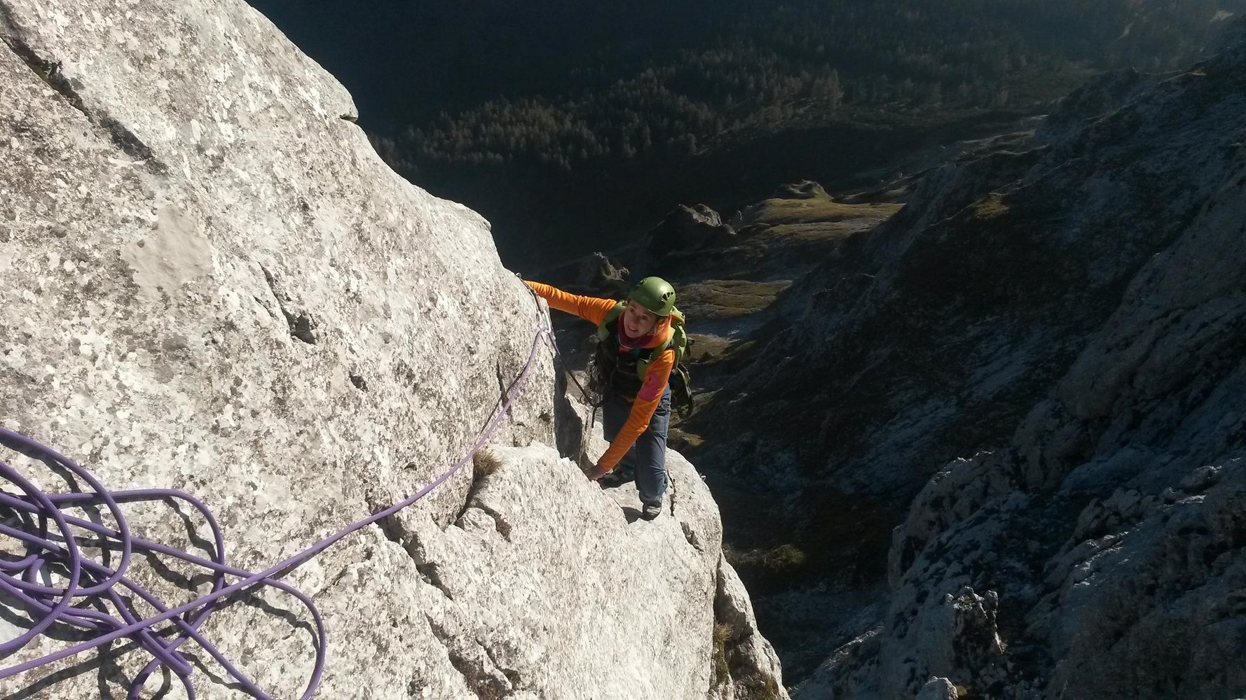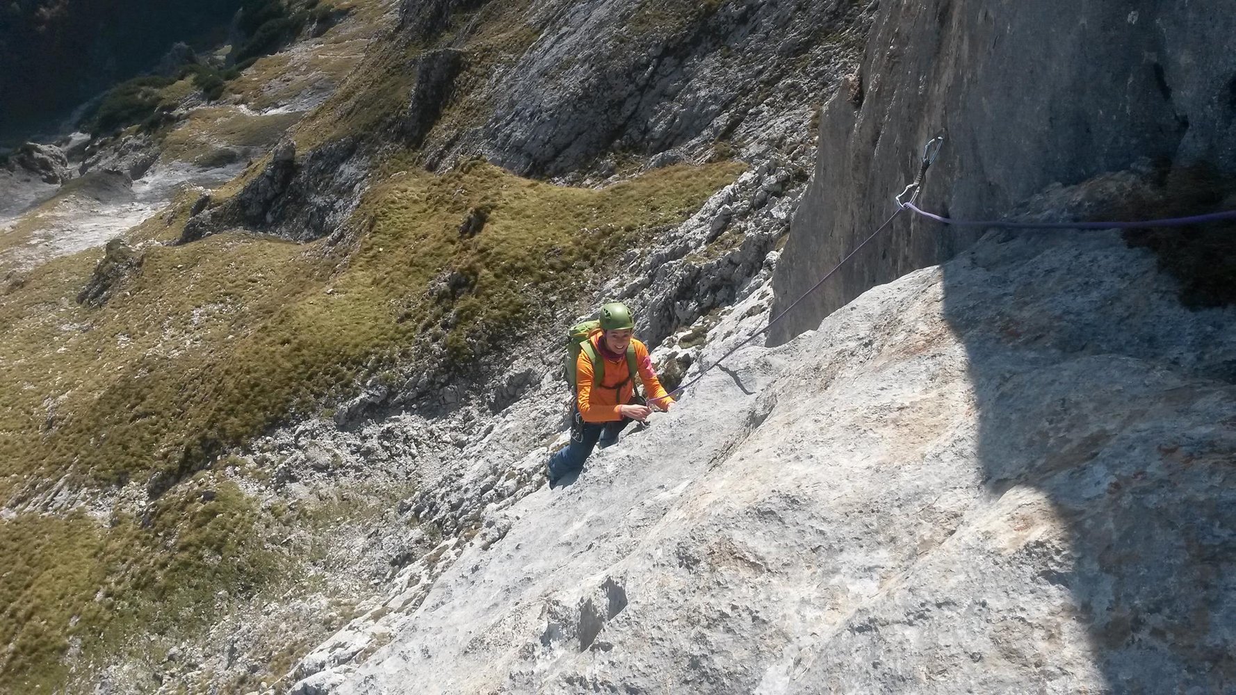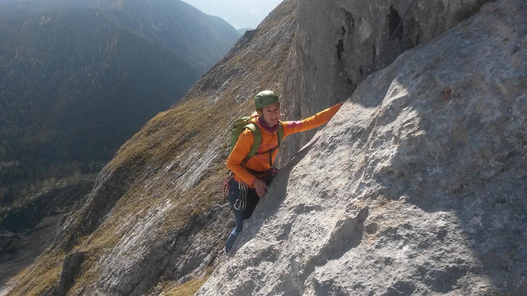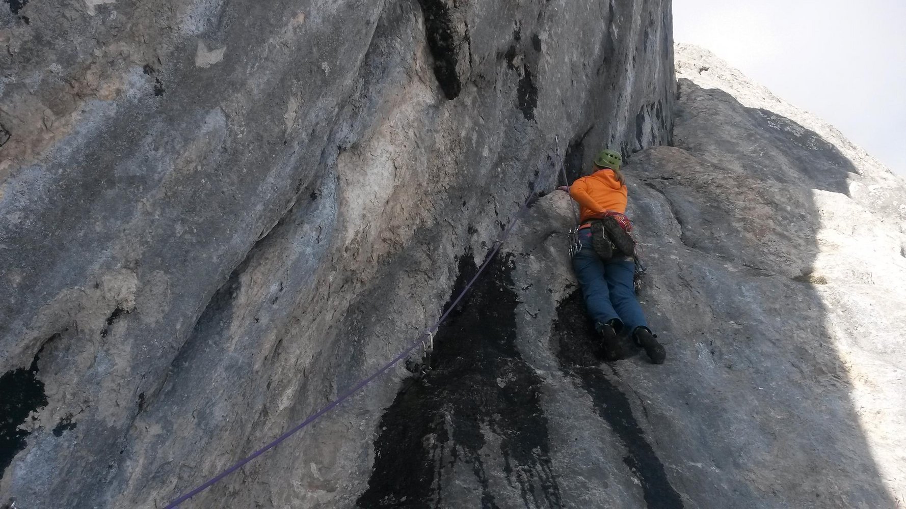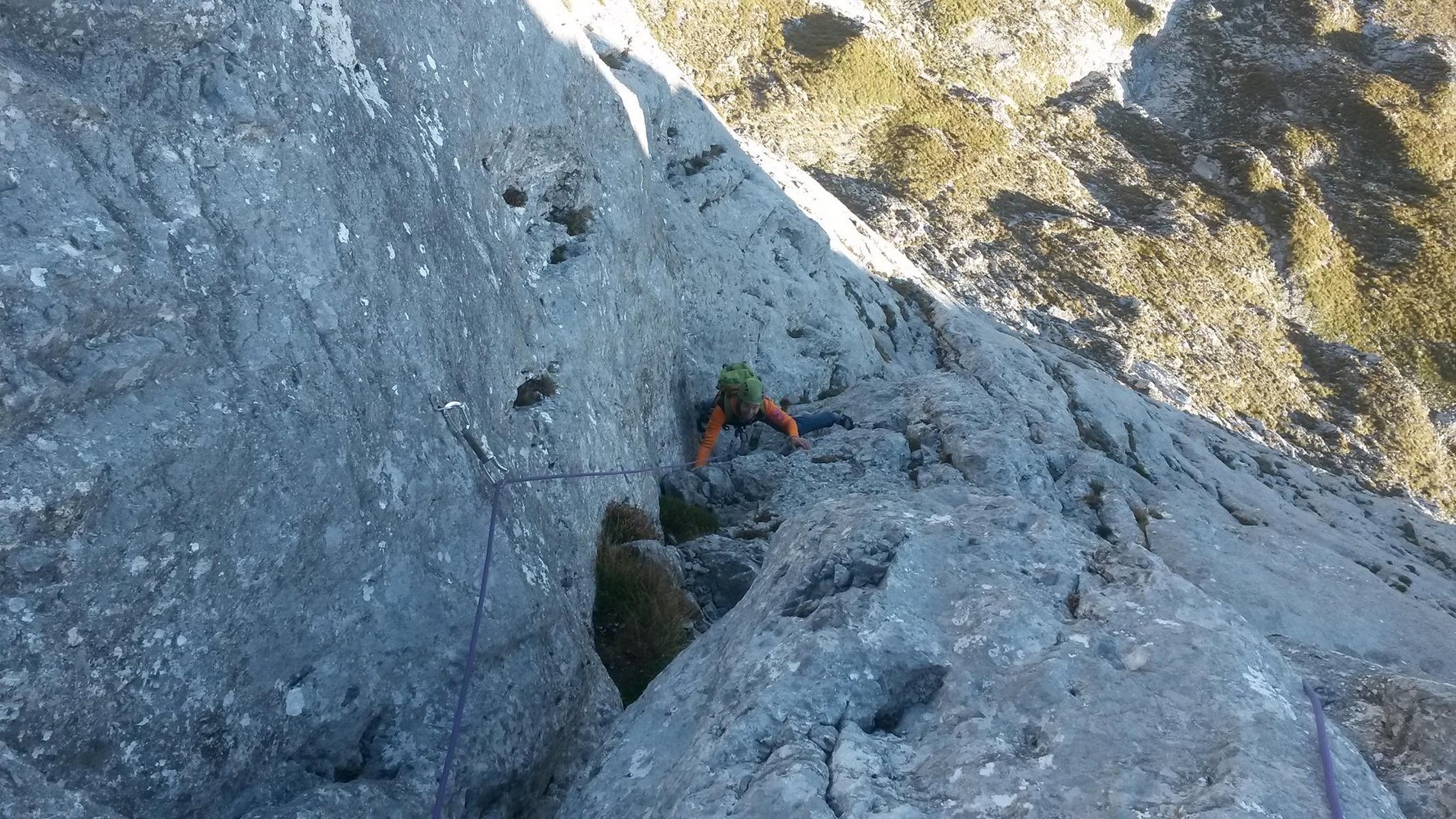 Kurze und großartige Verschneidungs und Plattenkletterei in kompaktem, festem Fels entlang einer schrägen Verschneidung durch die Sparafeld Südwand. Die Tour kann bei Zustieg von oben auch gut im Anschluß an eine Tour am Kalbling gemacht werden.