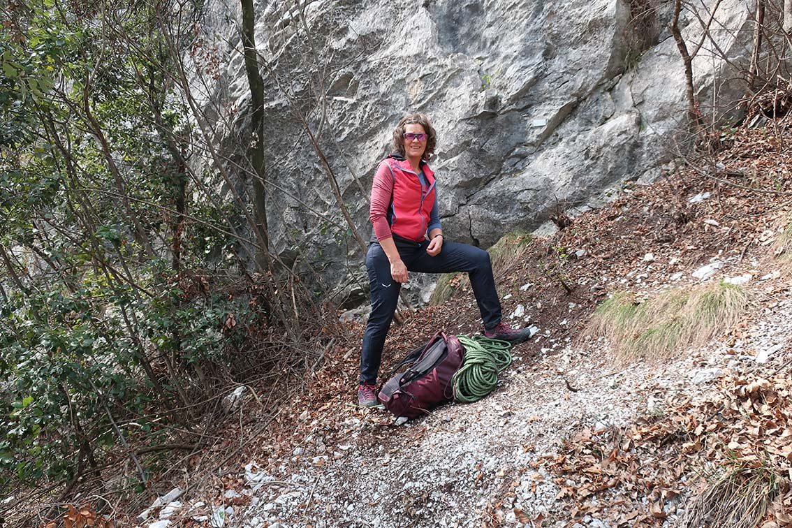 Vom Ausstieg beim Wandbuch (dort geht es auch nach links abwärts zur erwähnten Variante Sonia) aufwärts, man kommt zu einer kurzen Felsstufe, die mithilfe eines Fixseils überwunden wird. Auf dem Pfad kurz aufwärts, bis man auf einen breiten Pfad trifft, auf diesem nach rechts absteigen (kurze Felsstufe ist als einfacher Klettersteig versichert). Unten dann auf dem Weg zurück zum Einstieg und auf dem bekannten Zustiegsweg zum Massenza See absteigen.