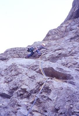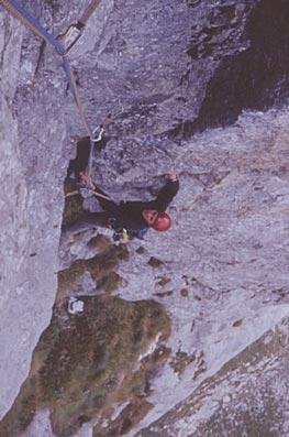 Schöne klassische Route, die 2001 mit AV-Klebehaken saniert wurde. Sie hat trotz der Sanierung ihren ernsten alpinen Charakter nicht verloren.