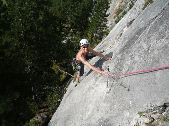 Auf grund der vielen Bolts ist die Tour gut 6/A0 kletterbar.