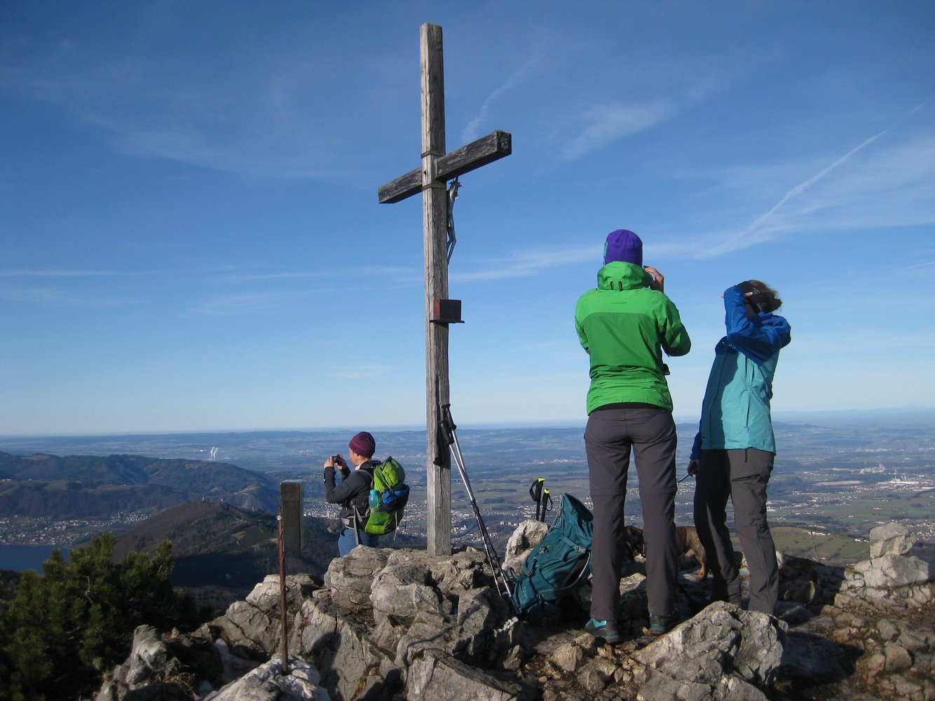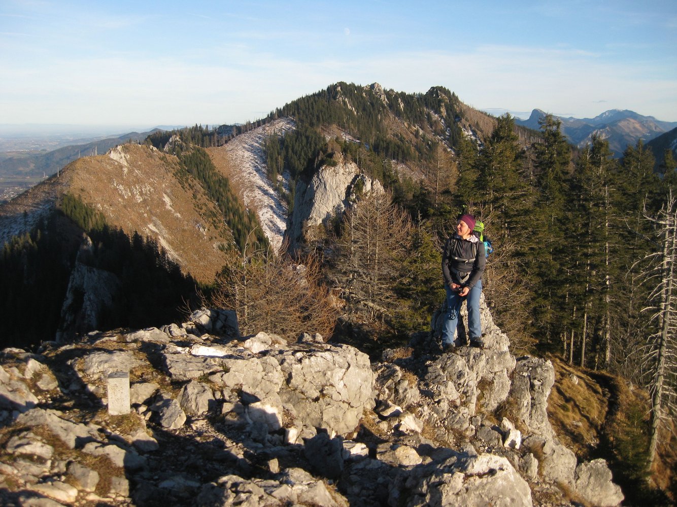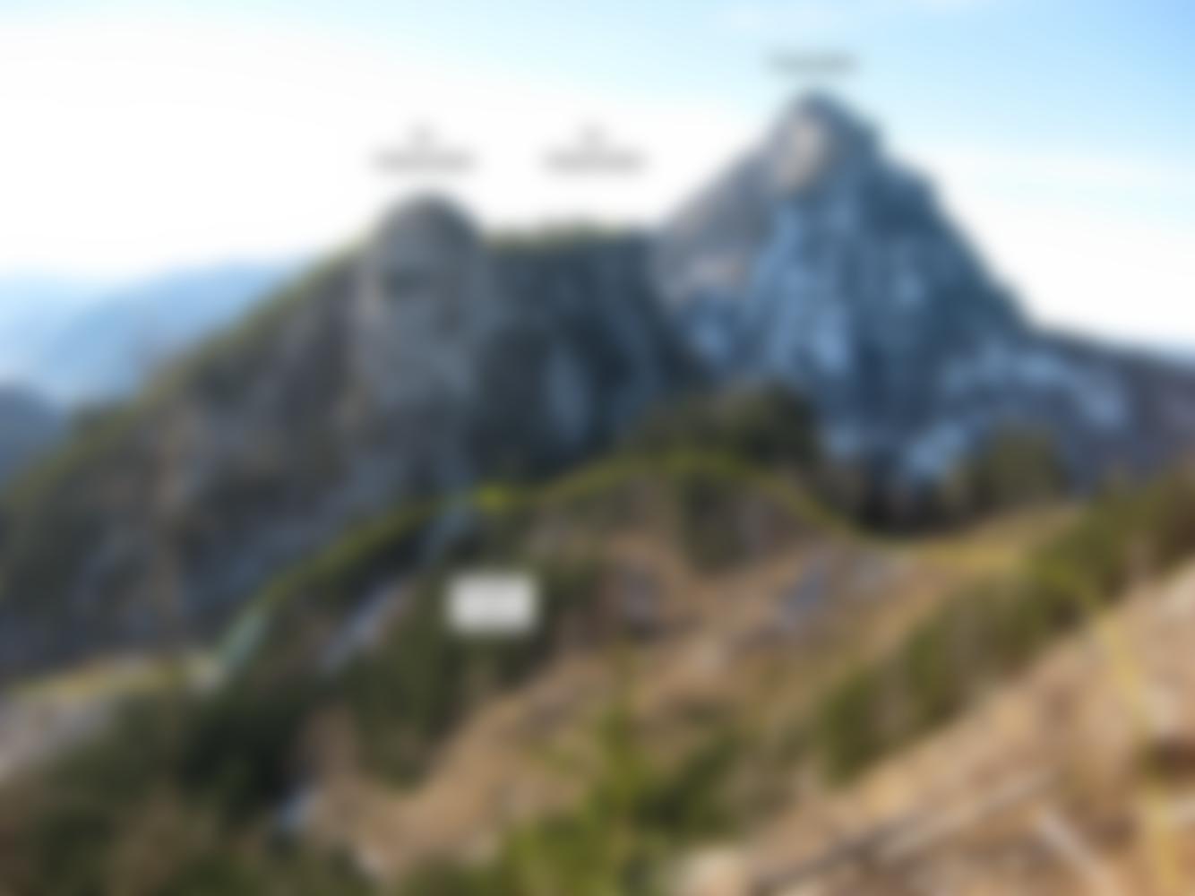 1) Die Tour kann man auch vom (überfüllten) Traunsee-Ostufer aus machen: Forststraße Richtung Mairalm, dann markierter Weg Richtung Hohe Scharte, auf ca. 980m Forstweg weit nach rechts (zuerst leicht fallend) zum Durchgang (1158m), zuletzt über den Südostkamm auf das Trapez (Vorgipfel, ca. 1410m) und das Steineck (1418m).
