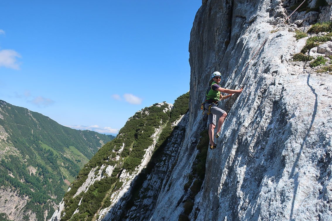 Gut mit Bohrhaken abgesichert - aber kein Plaisir, man muss schon etwas klettern.