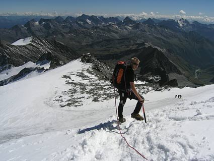 Trotz des logischen Routenverlaufes sei der Bergsteiger gewarnt: gute Akklimatisation, Gehen am kurzen Seil, sicheres Gehen mit Steigeisen, langer Abstieg mit steilen Passagen im Firn (der am Nachmittag auch noch anstollt!) und eine gute konditionelle Verfassung sind die Voraussetzungen für dieses wunderschöne, hochalpine Unternehmen.