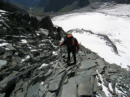 Als Hochtour ist der Stüdlgrat mit AD+ - wiederholte Sicherung notwendig, längere und exponierte Kletterstellen einzustufen!