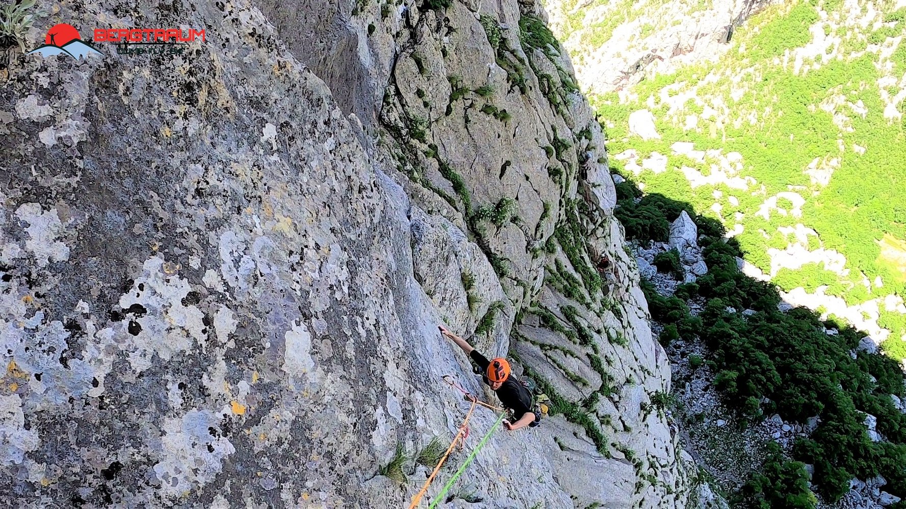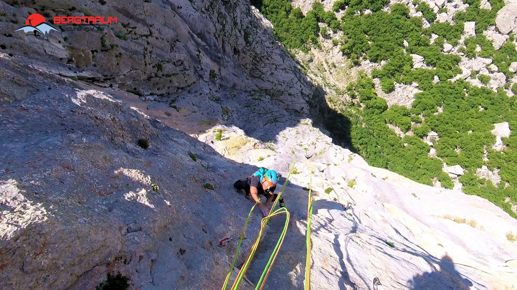Eine Spitzentour in der Anica Kuk Nordwestwand. Steiler und wasserzerfressener Fels. Die Absicherung ist typisch Paklenica mit eher weiten Hakenabständen. Immer den goldenen Bolts nach- dann kann nix schiefgehen. Die beiden Schlüsselseillängen mittig der Tour sind gut mit Friends zusätzlich abzusichern.