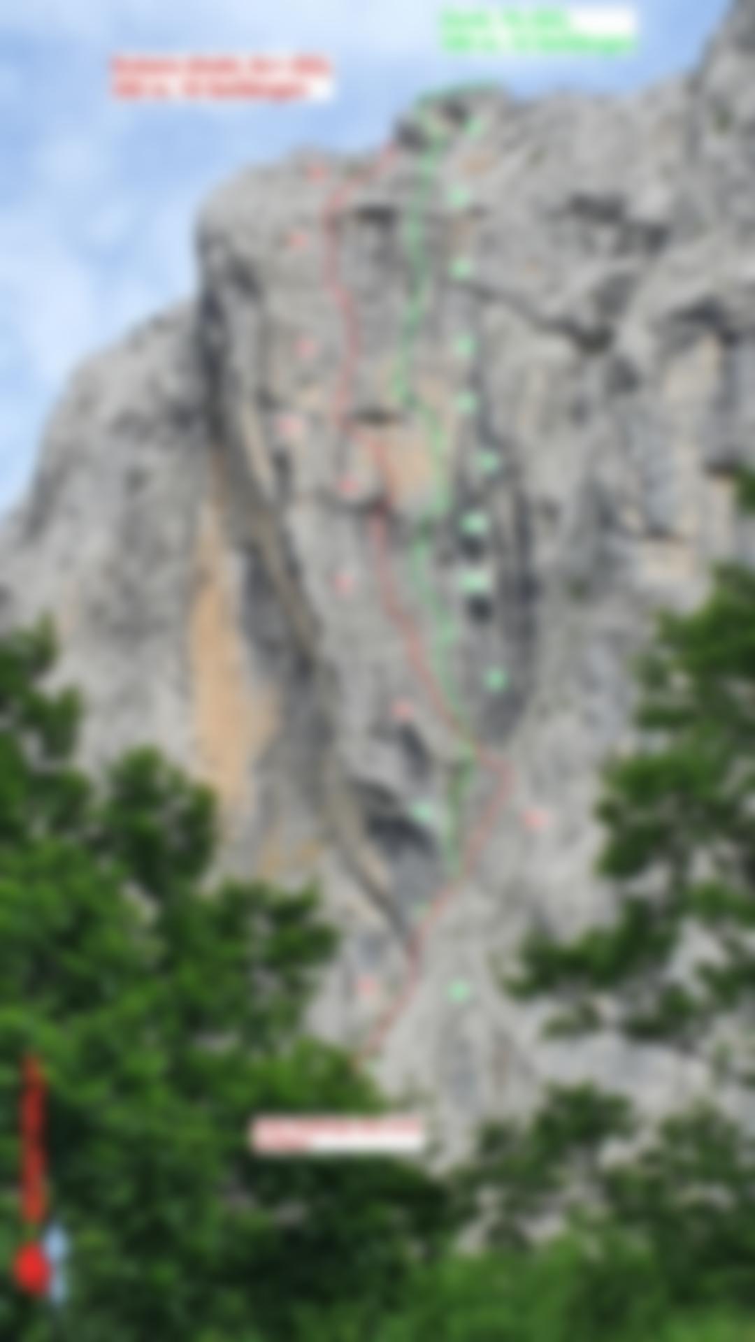 Einzelne Seillängen: 4a, 4a, 6a+, 6a, 5c, 6b, 6c+, 5c, 6a, 4b. Gesamt 10 SL