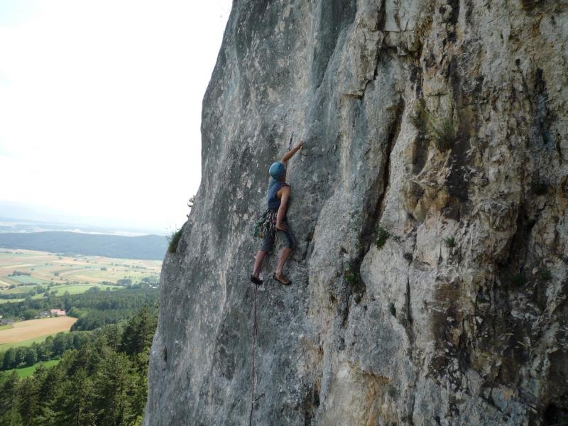Schöne, schwere Tour an der Pyramide. Die schwierige Länge ist recht zwingend oder 7/A1 (Bandschlingentrittleiter). Der ersten Längen sind ausgespochen schön und die Schlüsselänge ausgesprochen steil und glatt.